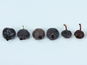 Le fruit de ce bleuetier en corymbe est entièrement pourri ; les tissus externes sont affaissés et ratatinés. Le fruit est recouvert d’un mycélium grisâtre et l’on aperçoit de...