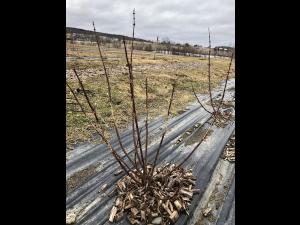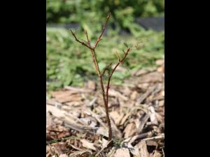 Plants de camerisier, situés dans une cuvette, ayant subi un gel hivernal au niveau des racines. Les plants tardent à débourrer et dépérissent par la suite.