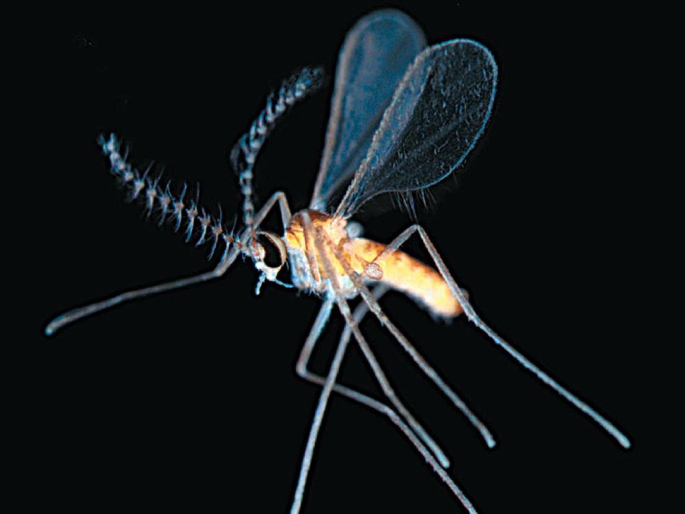Adulte : 1,5 mm; la tête est principalement composée des yeux, qui sont noirs; le corps est brun rosé; les pattes sont longues et fines; les antennes sont longues et noduleuses; l’abdomen est cylindrique.