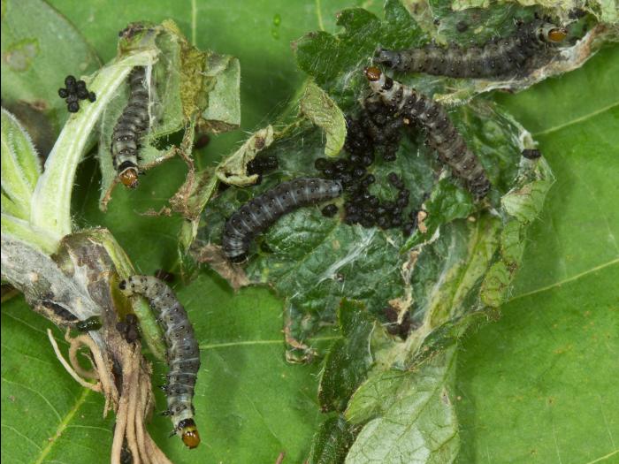 Cet insecte est très polyphage et peut s'attaquer à plus de 120 espèces de plantes. Il ne représente généralement pas une menace importante pour les plantes cultivées, mais les populations deviennent parfois très importantes et des dommages ont déjà été répertoriés dans les cultures de trèfle et de fraises. C'est au stade larvaire que cet insecte cause des dommages aux cultures. Les larves tissent un filet de soie sur les pétales ou les feuilles desquelles elles se nourrissent, nuisant ainsi au développement des fruits ainsi qu'à l'activité photosynthétique de la plante.