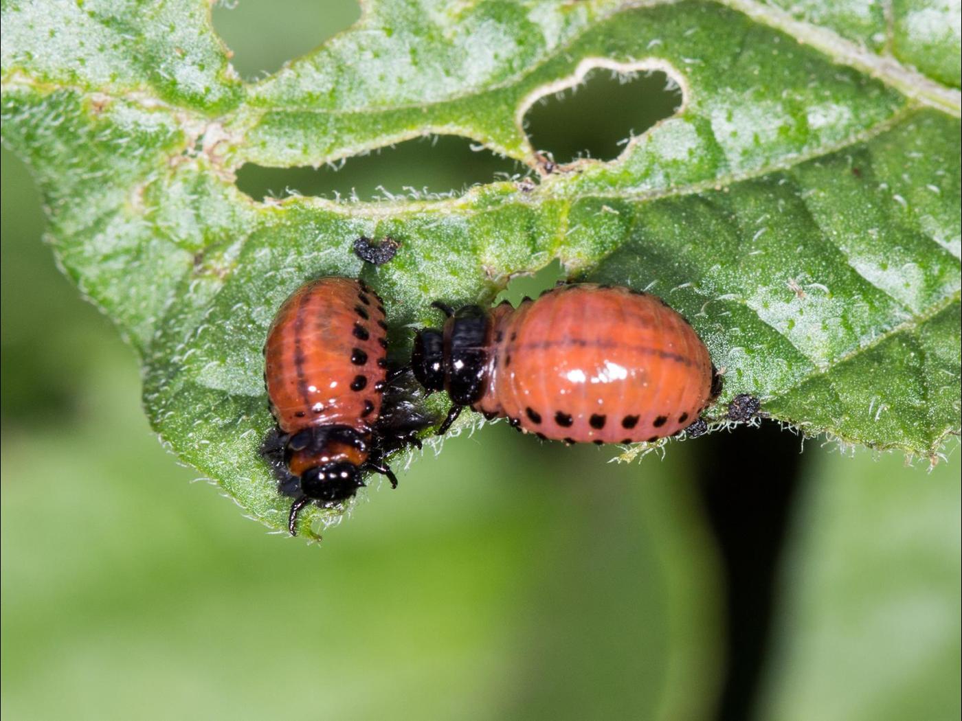 Le doryphore de la pomme de terre est le ravageur le plus important dans la culture de la pomme de terre. Les adultes et les larves se nourrissent du feuillage en grignotant des trous irréguliers à l'intérieur et à la marge des feuilles. Lors de fortes infestations, les plants peuvent être entièrement défoliés sur de grandes surfaces. La tomate et l'aubergine sont aussi susceptibles d'être endommagées par cette l'espèce.