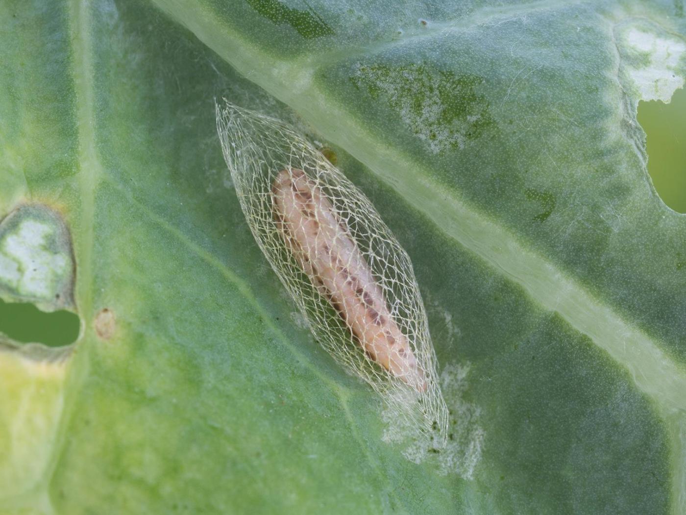 Chrysalide : 7,0 à 9,0 mm; elle est fusiforme et de couleur jaunâtre; un cocon ayant l'apparence de la dentelle l’entoure.