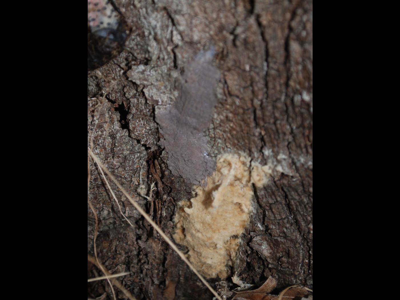 Dépistage : L’observation visuelle des plantes, particulièrement des troncs, est la seule méthode de dépistage efficace pour le moment. Les masses d’oeufs ressemblent à une trace de boue séchée sur le tronc et peuvent facilement être identifiées. L’installation de bandes collantes sur les troncs d’arbres peut faciliter l’observation des larves qui tentent de remonter vers la canopée après avoir chuté.