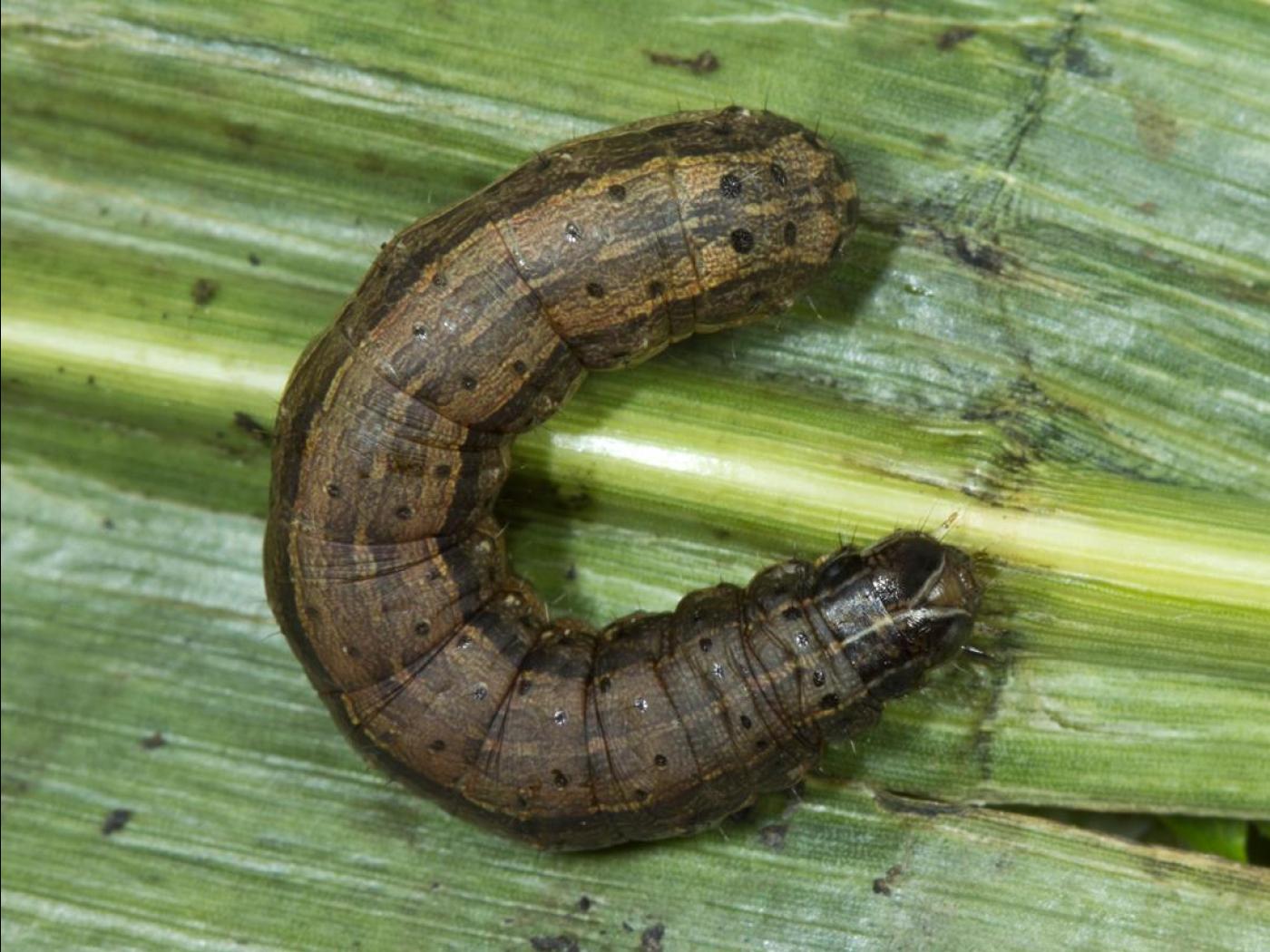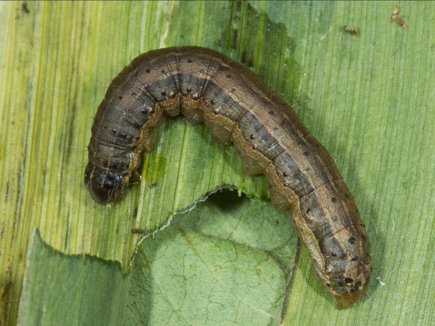 La légionnaire d’automne est une espèce très polyphage qui se nourrit principalement de graminées. Le maïs est une culture qui est très à risque de subir des dommages de la part de cette espèce. De façon générale, les dommages sont causés par les larves qui grignotent le feuillage et creusent des galeries dans les parties apicales des plants (bourgeons, épis, etc.). Lorsqu’elles infestent les cultures au stade de semis, elles peuvent aussi couper les tiges. Dans le maïs, les larves infestent d’abord le cornet et forment des trous irréguliers sur le feuillage. Plus tard en saison, elles s’insèrent à l’intérieur de l’épi et en grignotent le contenu.
