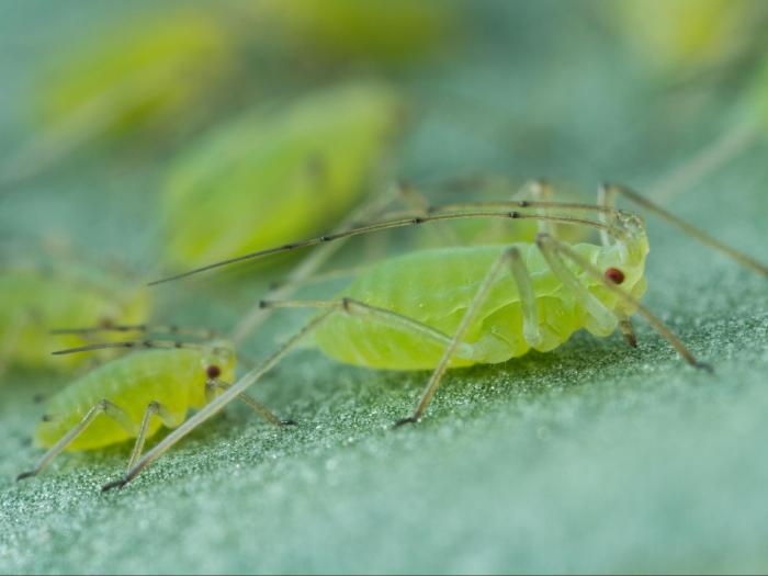 Sous les latitudes tempérées, cette espèce complète tout son cycle sur les légumineuses, c’est-à-dire que l’on retrouve des formes sexuées et parthénogénétiques sur ces plantes. Elle est un vecteur de plus de trente virus. L’espèce est considérée cosmopolite.