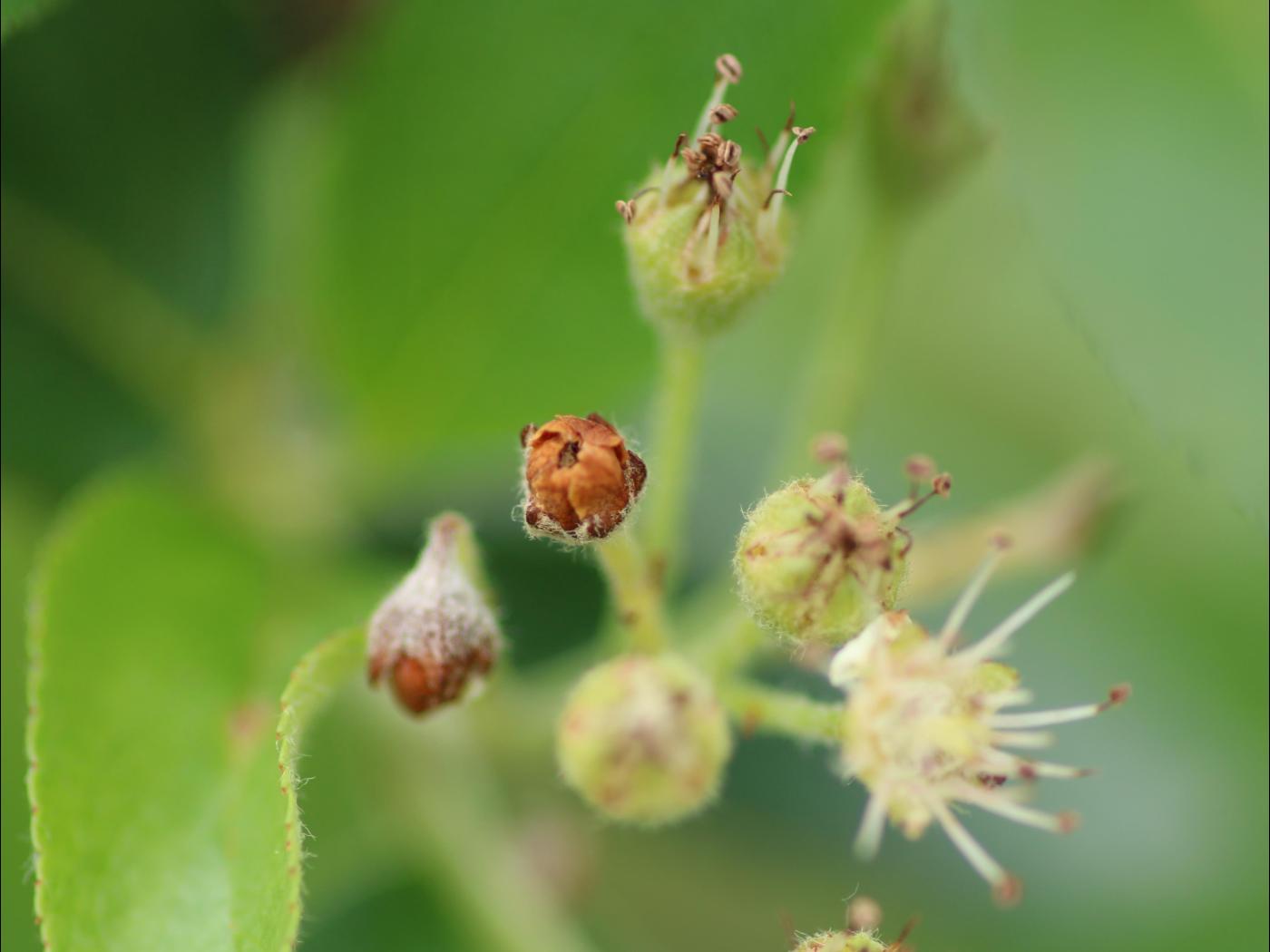 Légende: Boutons floraux d'aronia endommagés