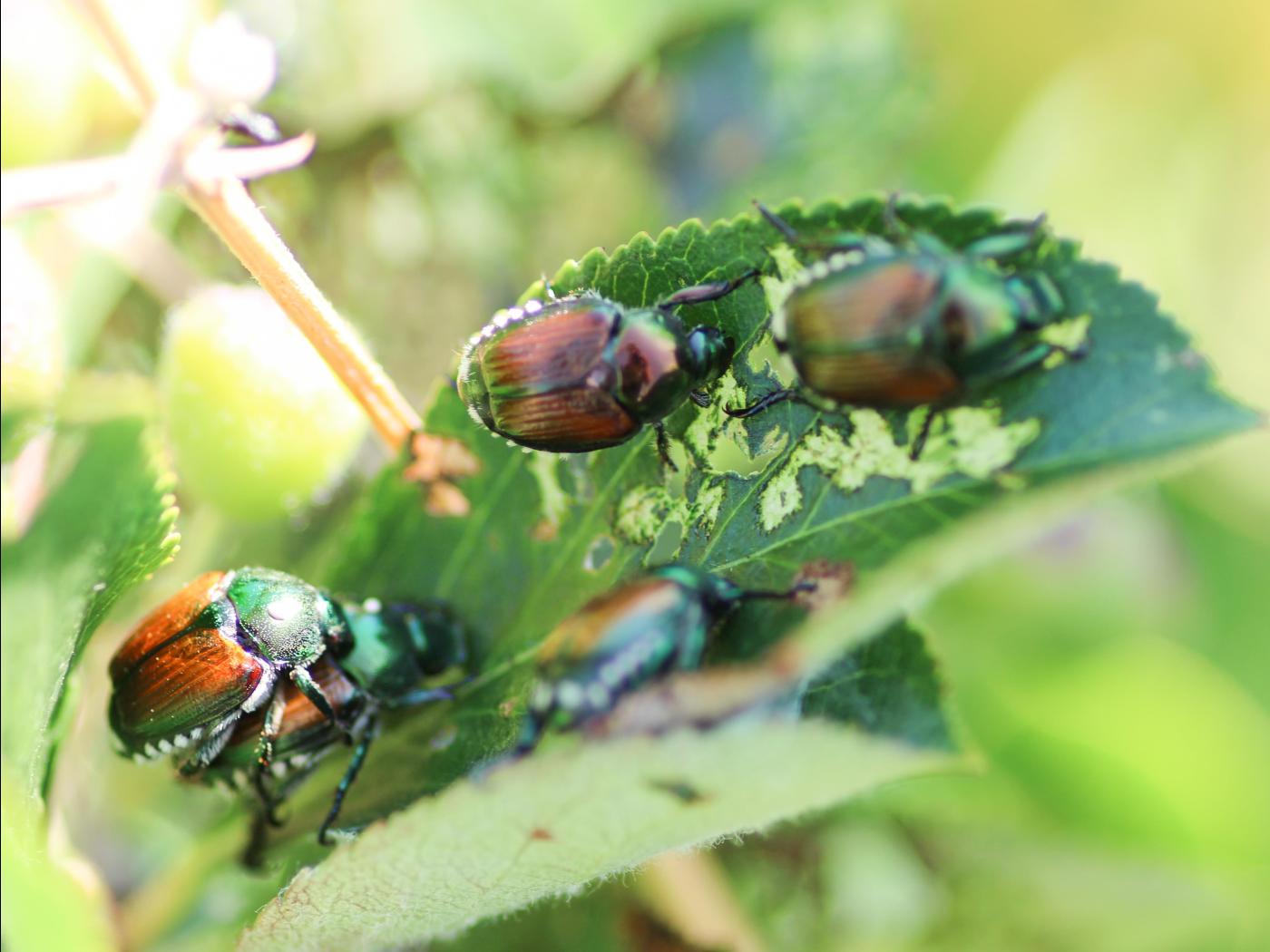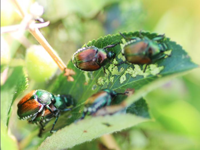 Légende: Dommages de scarabée japonais sur un plant d'aronia