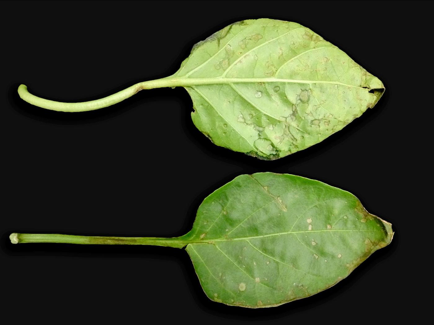 Contrairement à la tomate, les symptômes observés en serre et en champ sont similaires et les infections sur la tige sont rares.
