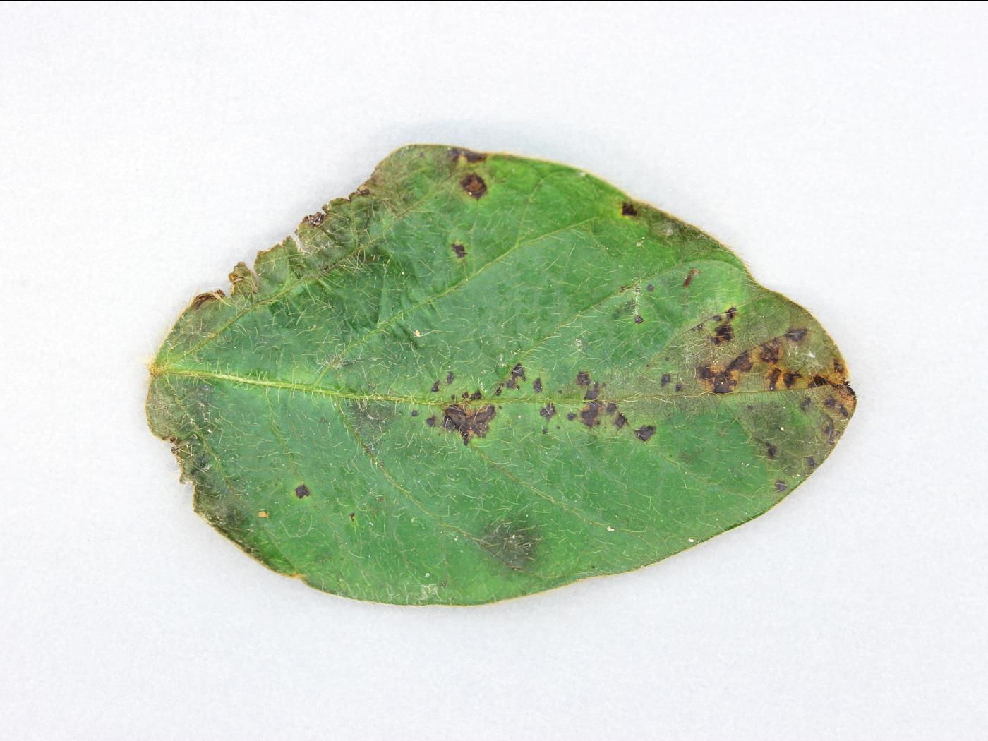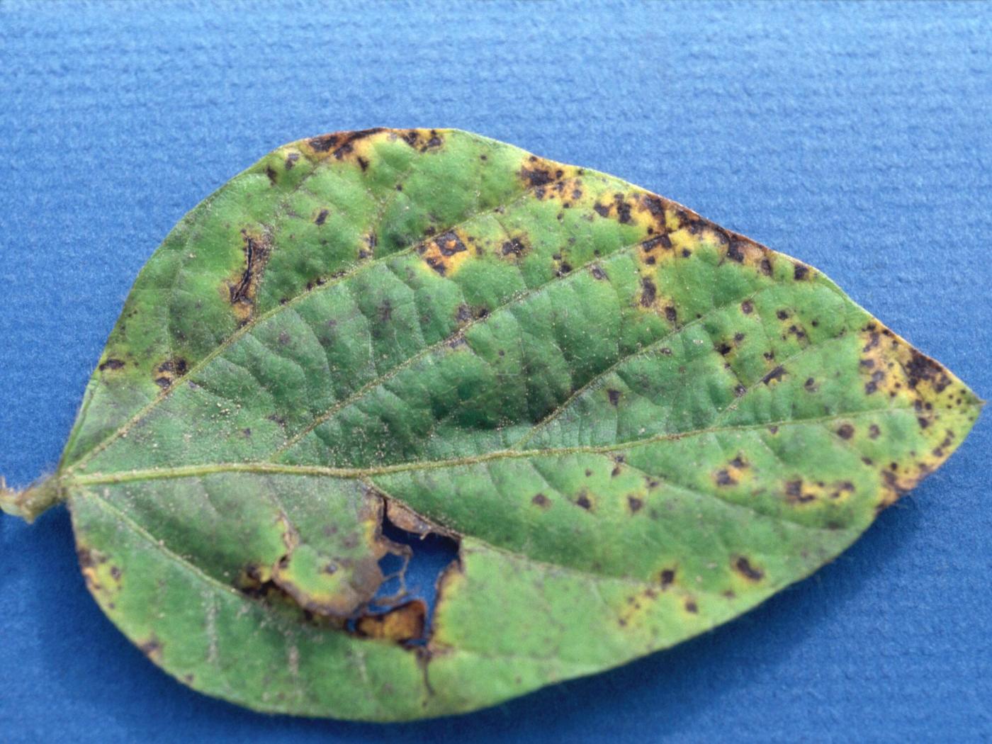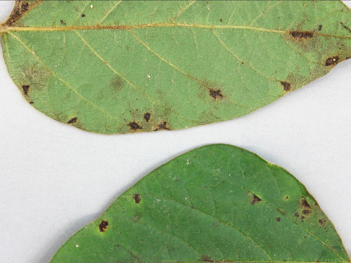 La tache bactérienne causée par Pseudomonas syringae affecte de nombreuses cultures. Chez le soya, c’est la maladie bactérienne la plus commune lorsque le climat est frais et humide. Les symptômes sont visibles au champ vers la moitié de la saison de culture. Les pertes de rendement sont négligeables, mais la qualité des grains peut être affectée. La brûlure bactérienne est donc fréquente, mais mineure.
