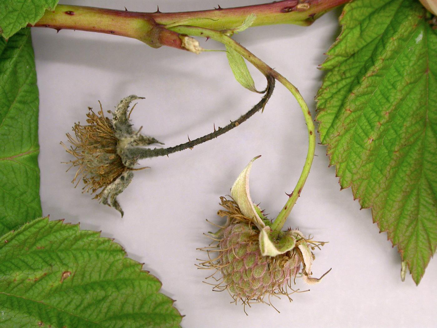 Légende: Noircissement d'une fleur de framboisier