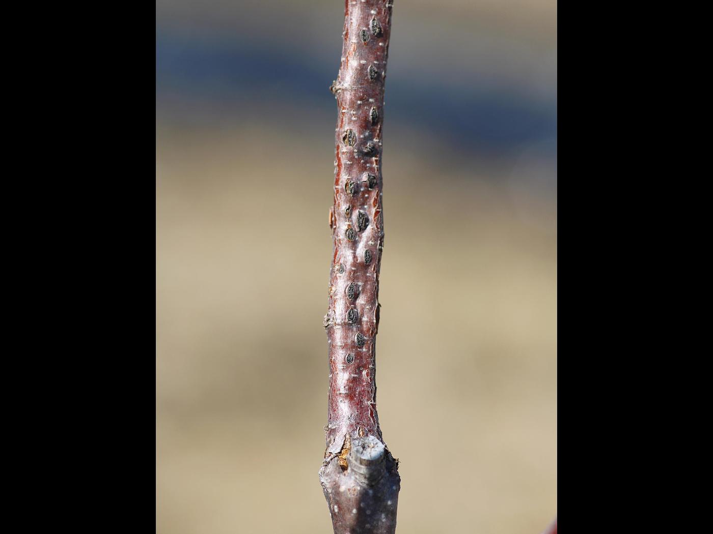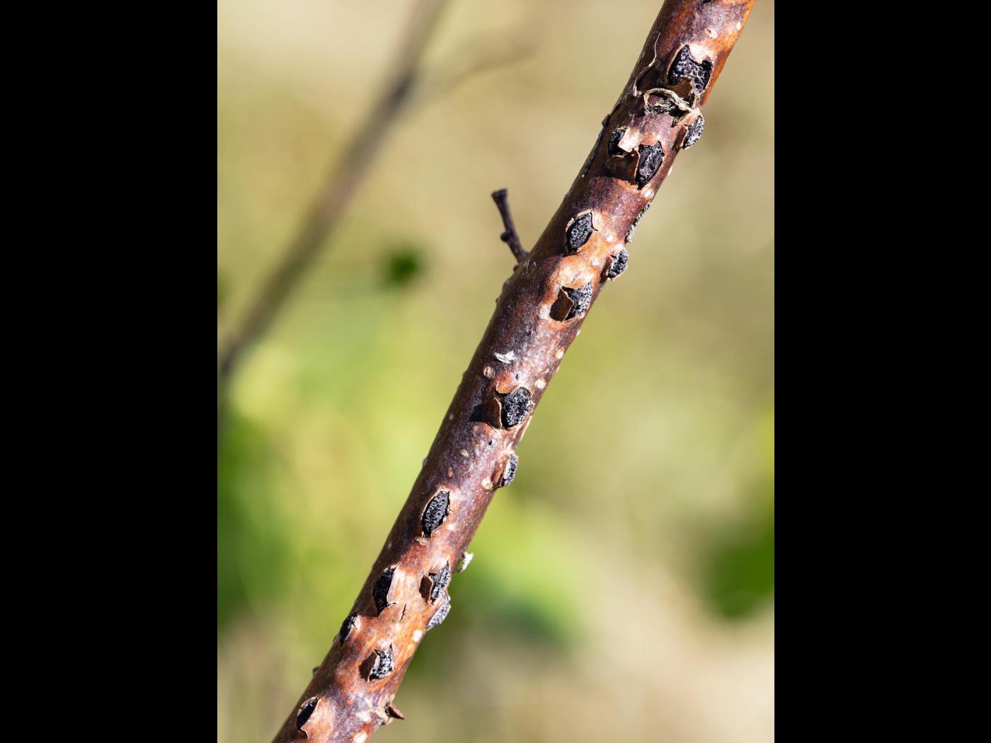 Légende: Tige de noisetier affectée par la brûlure orientale du noistier