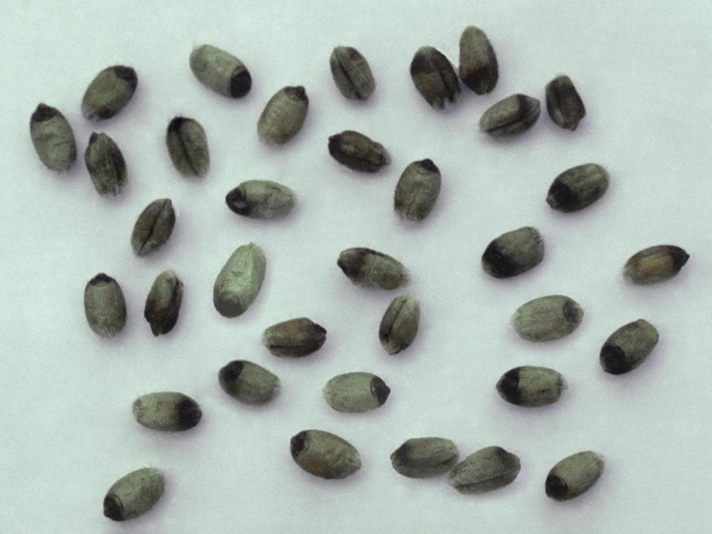 Grain : coloration brune à noire des grains affectant surtout le germe et le sillon. Les grains sont ratatinés.