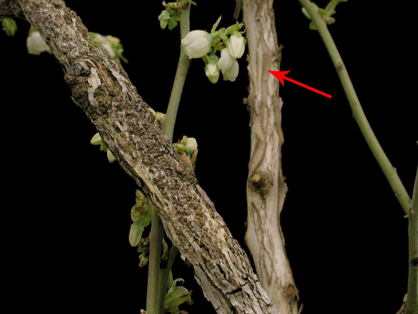 Ces symptômes peuvent être confondus avec des chancres de tige causés par différents champignons (Godronia (Fusicoccum), Cytospora et Colletotrichum) ou la brûlure phomopsienne (Phomopsis sp.). Lorsque les infections sont près du collet, elles peuvent être confondues avec des blessures causées par du gel hivernal.