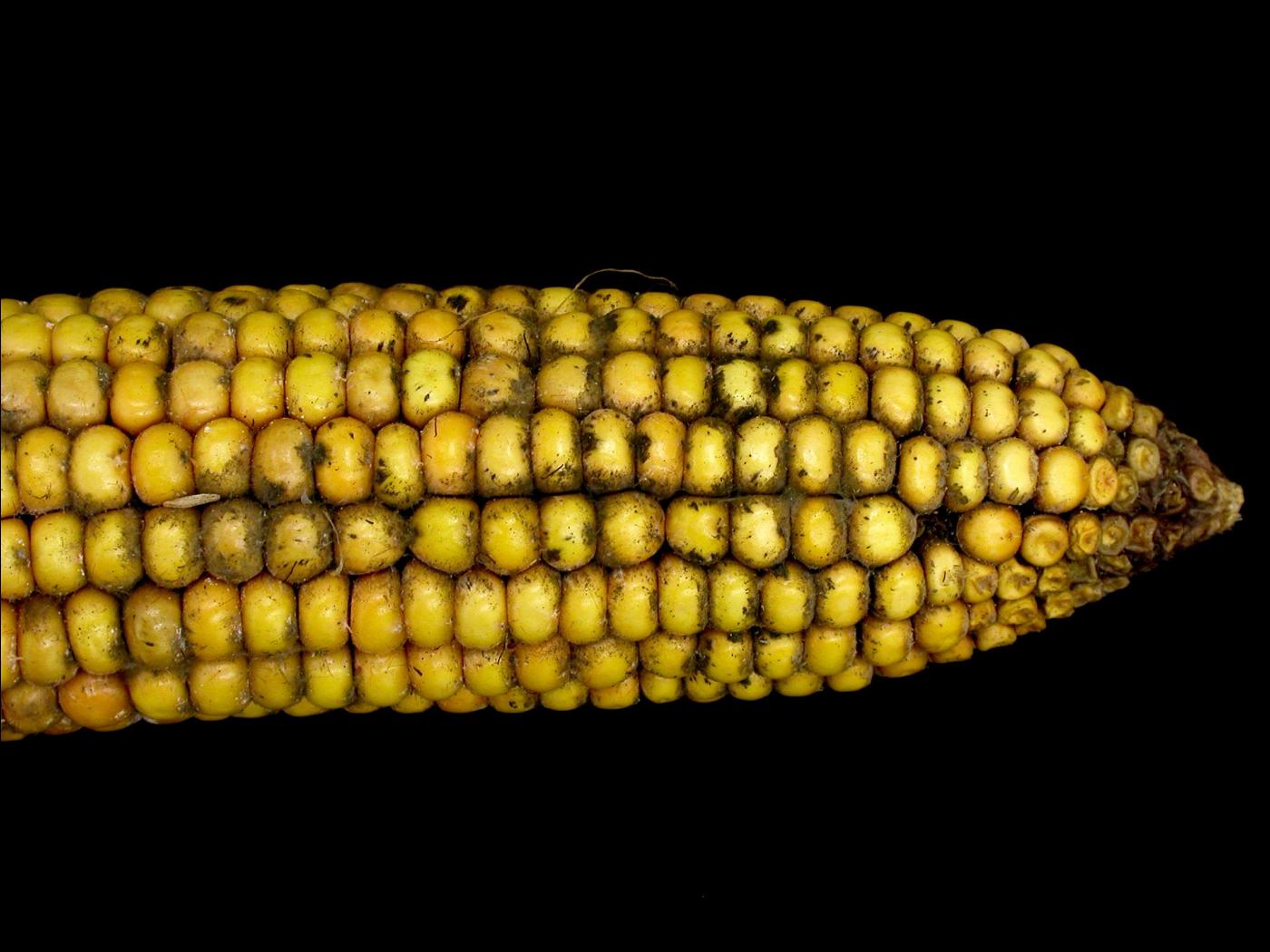 Divers champignons infectent les épis de maïs. Parmi les plus agressifs, il y a les genres Aspergillus, Diplodia, Fusarium et Gibberella. La moisissure noire causée par les genres Cladosporium, Botryosphaeria, Penicillium, Rhizopus et Trichoderma est occasionnelle et mineure. Chez le maïs grain et fourrager, deux espèces de Cladosporium, C. herbarum et C. cladosporioides, peuvent causer de tels dommages. Cladosporium est un champignon ubiquiste qui cause rarement des dommages importants. L’entrée de Cladosporium dans les grains est favorisée par des dommages causés par les insectes, les oiseaux, le gel ou la grêle. La moisissure noire est souvent observée en association avec d’autres maladies des épis. Les infections au champ prédisposent les grains à la pourriture ce qui occasionne parfois des pertes importantes lors de l’entreposage des grains. Contrairement aux autres champignons affectant les épis, Cladosporium ne produit pas de mycotoxines dans les grains.