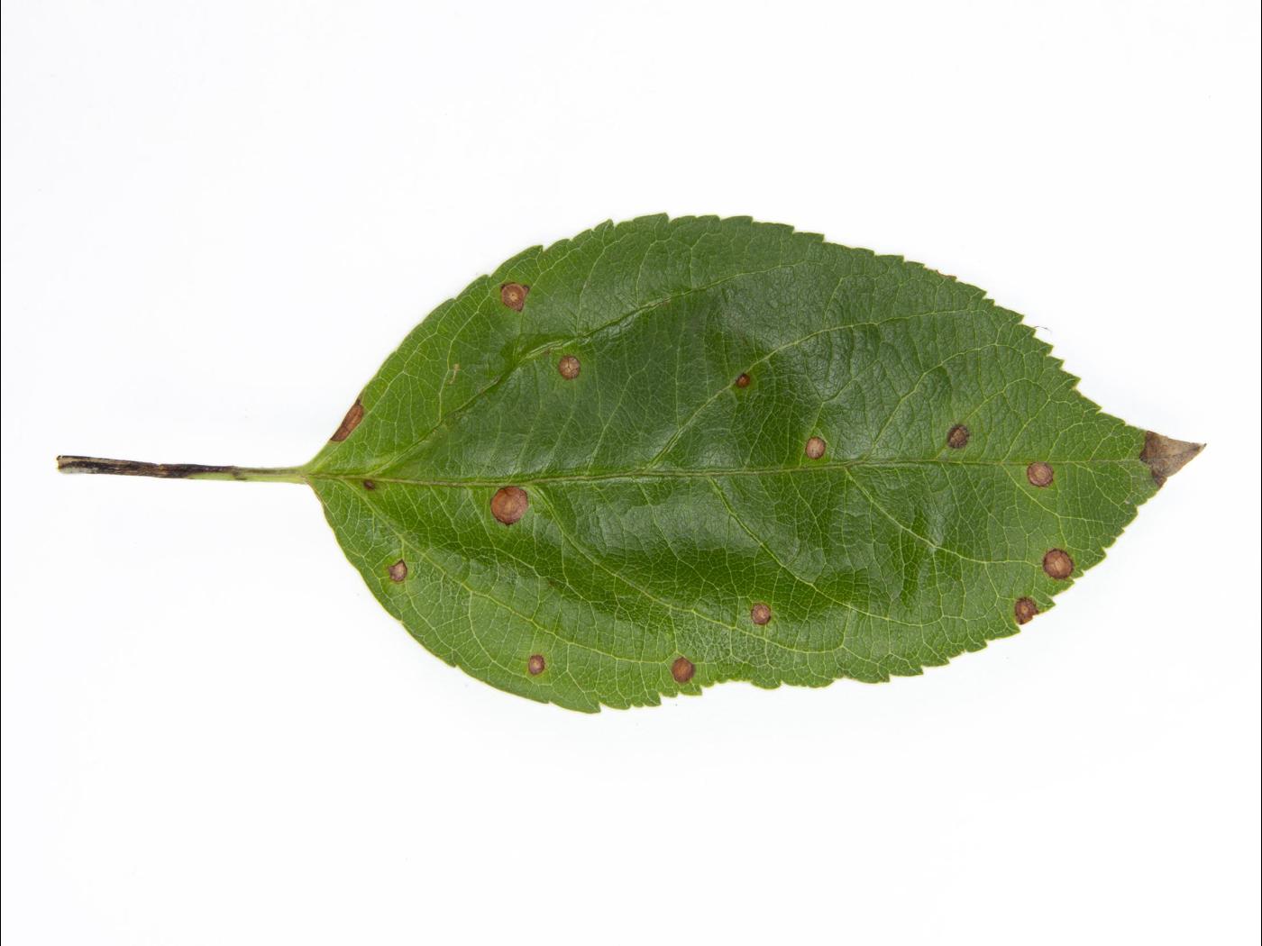 Le champignon hiverne sur le bois mort, les chancres sur rameaux, branches et tronc. Les ascospores sont issues principalement des pseudothèces présents sur les branches infectées depuis plus d’un an. Les conidies et les ascospores sont relâchées des structures fongiques (pycnides et périthèces) durant les pluies printanières et estivales. Les ascospores sont libérées dès le stade débourrement et atteignent leur apogée 4 à 6 semaines après la chute des pétales. Elles sont dispersées par le vent sur les feuilles et les fruits. Les conidies sont également produites peu de temps après le débourrement et la production de conidies se poursuit tout au long de la saison de croissance. Elles sont dispersées par les éclaboussures d’eau (pluie).