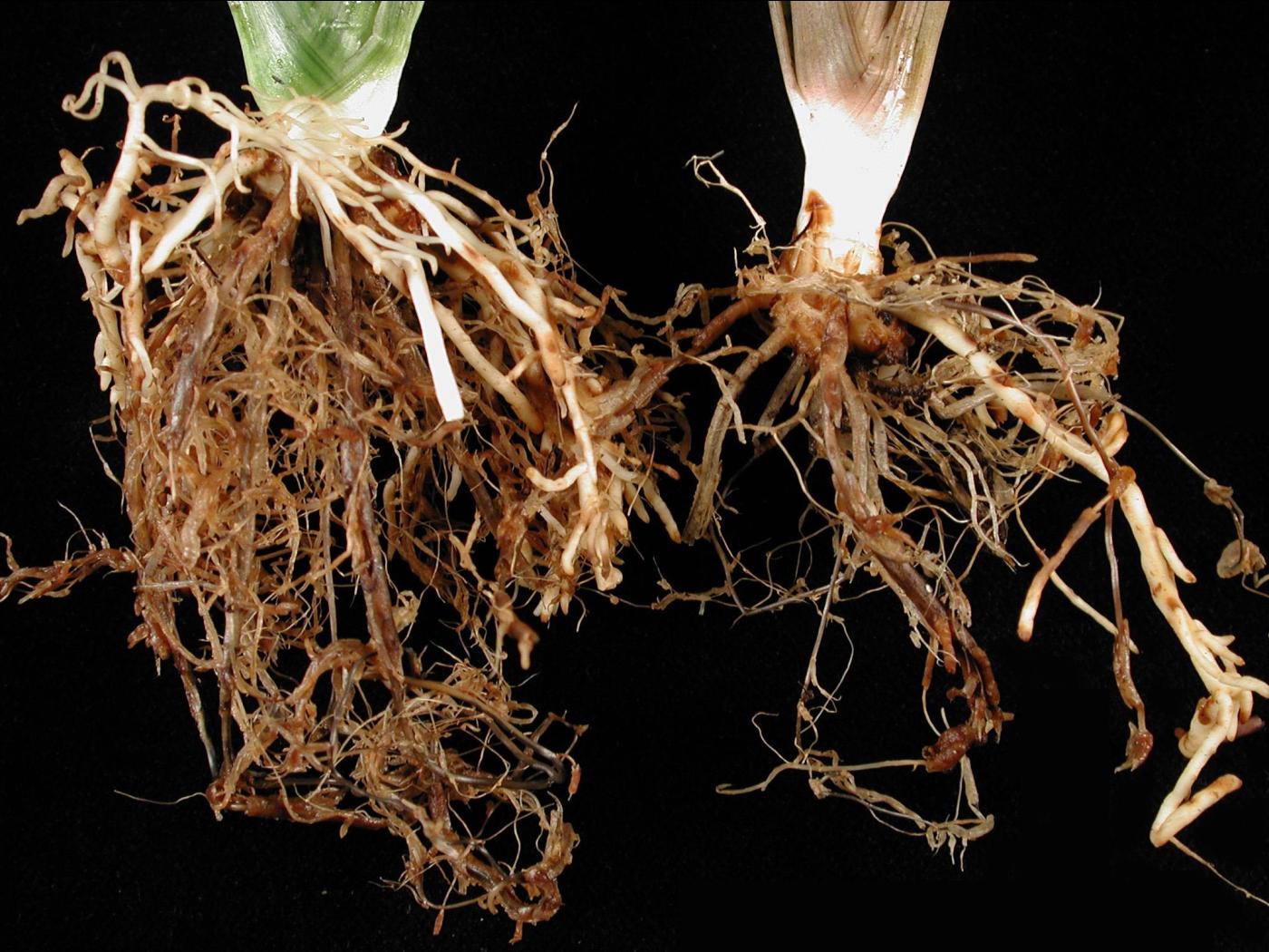 La pourriture fusarienne peut être confondue avec des symptômes d’autres maladies racinaires (Pythium spp.. Phytophthora spp., Rhizoctonia solani).