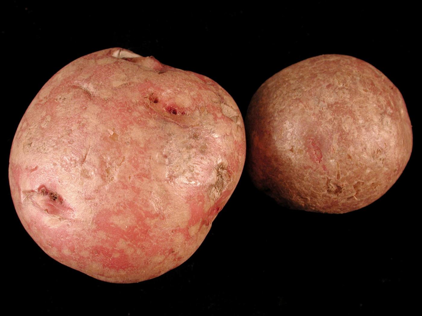 Sur le périderme des tubercules, la tache argentée et la dartrose (Colletotrichum coccodes) se côtoient fréquemment. Ces deux maladies affectent l’apparence des tubercules. Au fil des années, elles sont devenues importantes avec le développement des marchés de la pomme de terre lavée et de croustilles.