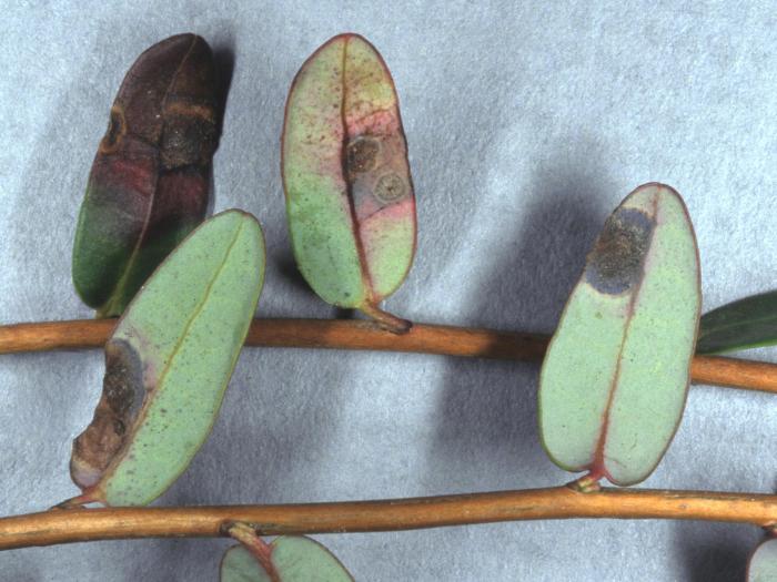La tache noire affecte seulement la canneberge. C’est une maladie occasionnelle et mineure. En fait, le champignon Mycosphaerella nigromaculans colonise souvent les lésions des feuilles qui sont déjà infectées par la tache rouge des feuilles (Exobasidium rostrupii). Prises individuellement, ces deux maladies causent peu de dommages aux plants, mais lorsqu’elles sont présentes en même temps, elles peuvent causer le dépérissement des jeunes pousses. Les cultivars ‘Ben Lear’ et ‘Stevens’ sont particulièrement sensibles à ces maladies.