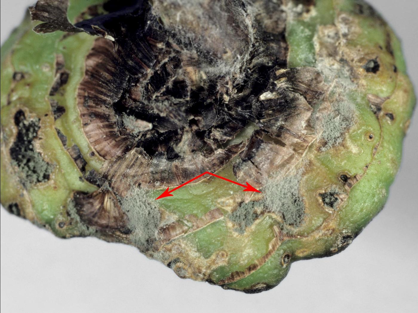 Cette maladie peut être confondue avec la moisissure grise (Botrytis cinerea – conidiophores beiges à bruns et sporulation blanc grisâtre) et des pourritures bactériennes.