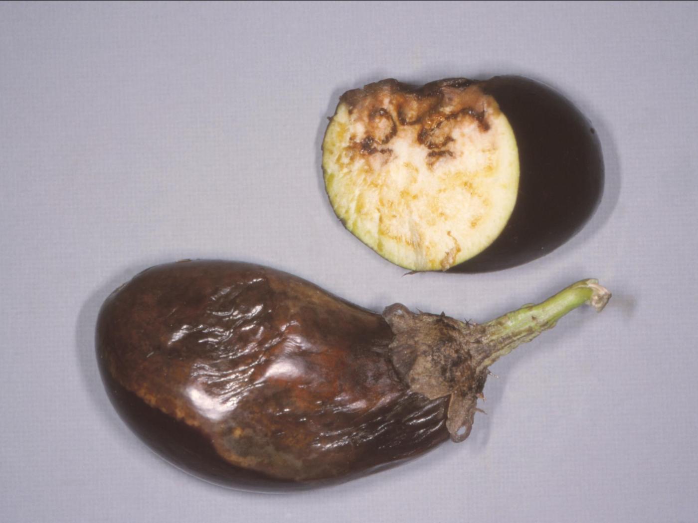 La pourriture des fruits causée par Phytophthora peut être confondue avec la pourriture des fruits causée par Phomopsis vexans mais contrairement à Phomopsis, Phytophthora ne produit pas d’anneaux concentriques sur l’épiderme des fruits ni de pycnides.