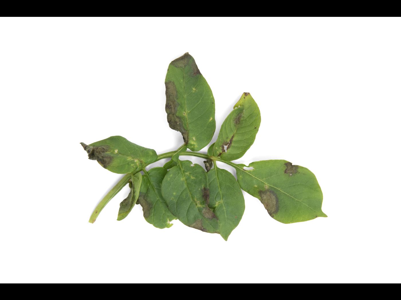 Le mildiou, causé par Phytophthora infestans, est un parasite susceptible de s'attaquer à toutes les parties de la plante. C’est une maladie extrêmement destructive de la pomme de terre. Avant l’utilisation de fongicides foliaires, le mildiou était la maladie fongique qui causait les plus grands dommages à cette culture. Il affecte également la tomate, le poivron, l’aubergine, le pétunia et des mauvaises herbes des solanacées (surtout les morelles (Solanum spp.)). La maladie évolue rapidement si les conditions sont humides et que la maladie n’est pas contrôlée. Les champs peuvent être détruits en quelques jours. Une fois établie, la lutte à Phytophthora est ardue, voire impossible. Les plants affectés sont distribués en foyer.