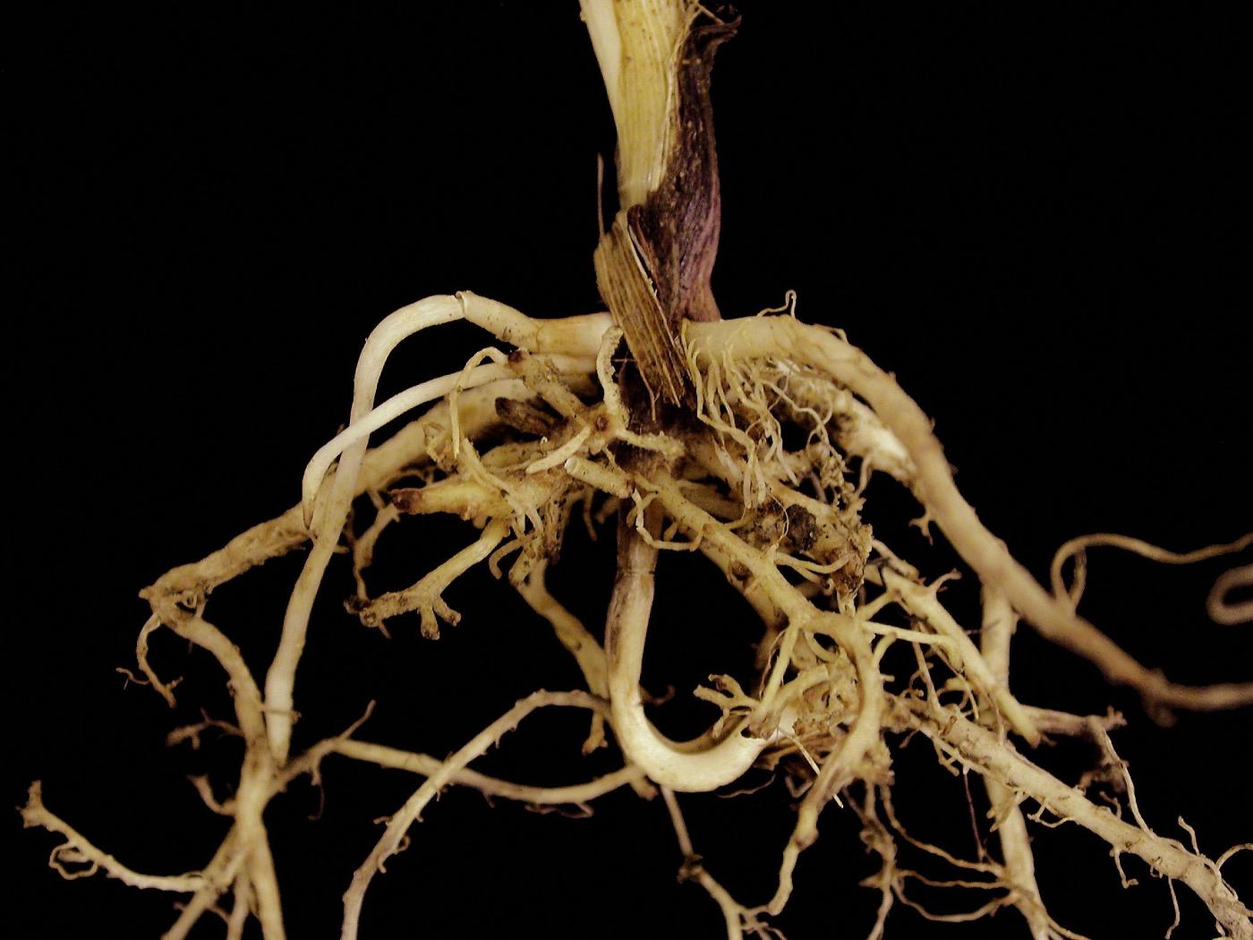 Racine : renflement à l’apex des racines, racines trapues et réduction de la densité du système racinaire.