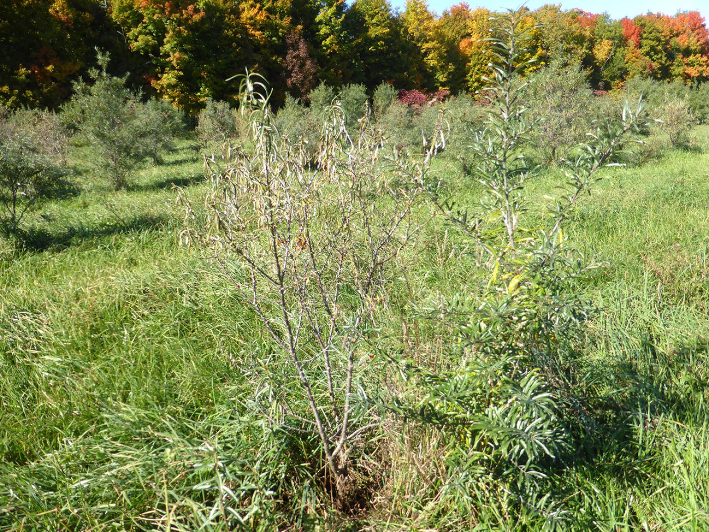 Légende: Plant d'argousier dépérissant.