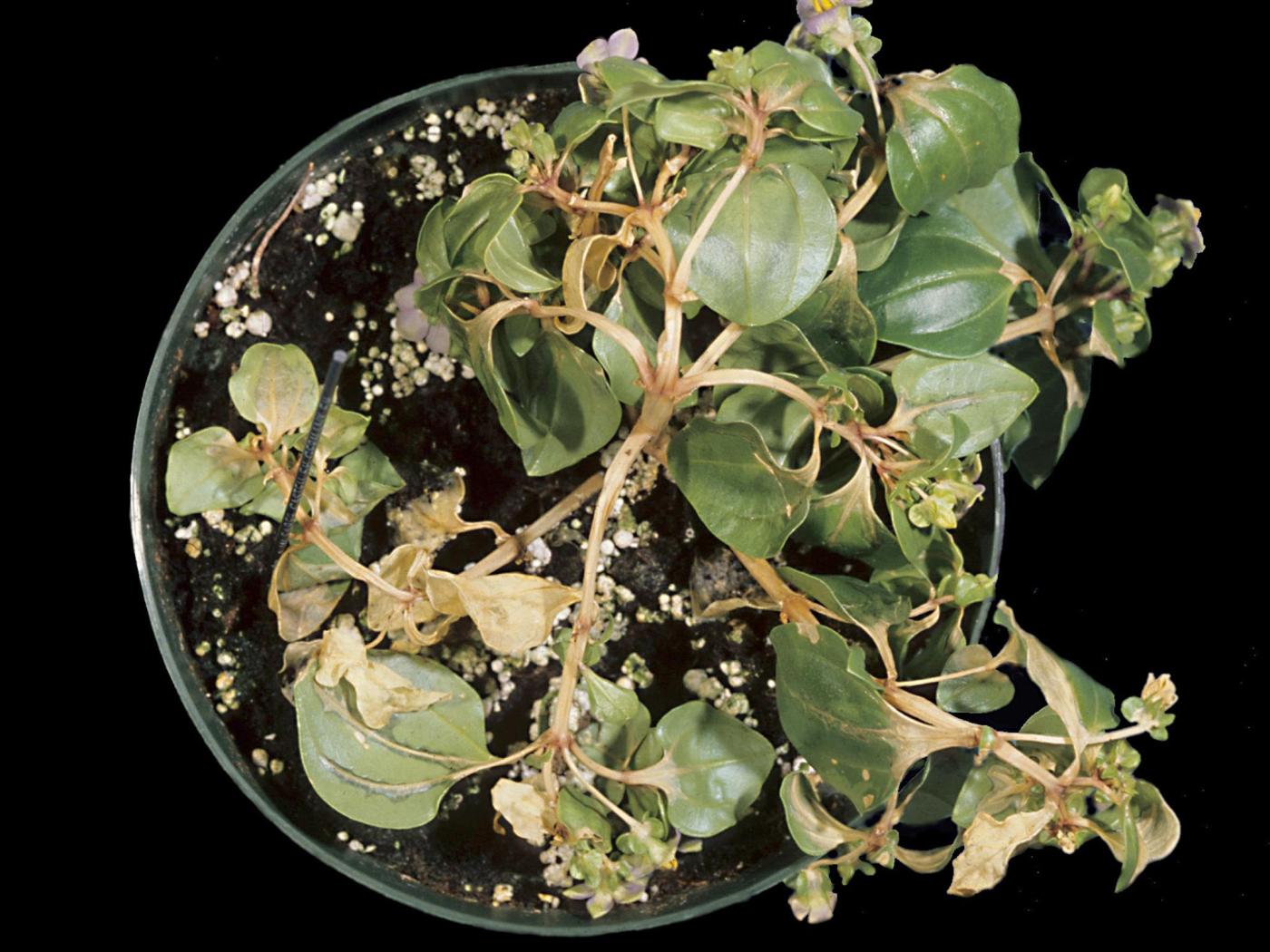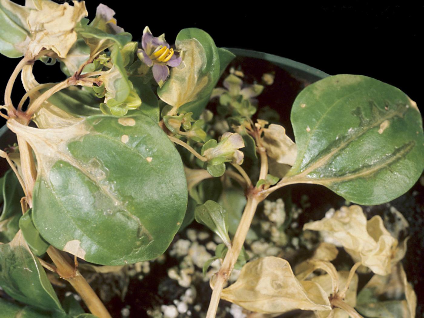 Plant : rabougrissement, nanisme, flétrissement puis mortalité. La mortalité est rapide lorsque les transplants sont moyennement à fortement infectés tandis que les symptômes se manifestent plus tardivement lorsque l’infection est légère.