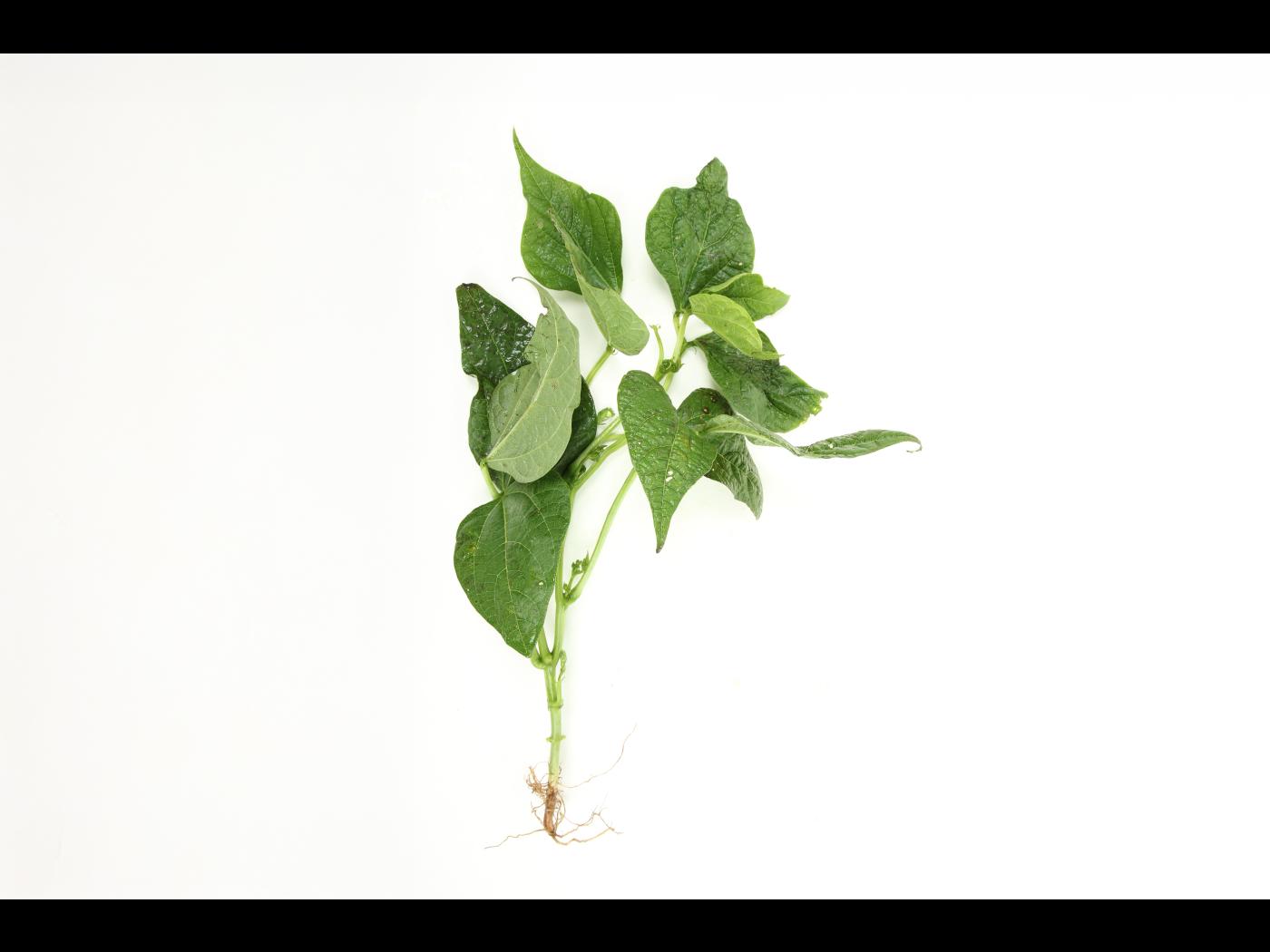 Description: Un jeune plant de haricot montre des déformations et du gaufrage des folioles médianes seulement. Les tests de laboratoire ont révélé la présence du virus de la mosaïque du soya (SMV). Son hôte principal est le soya, mais il peut infecter certaines variétés de haricot.