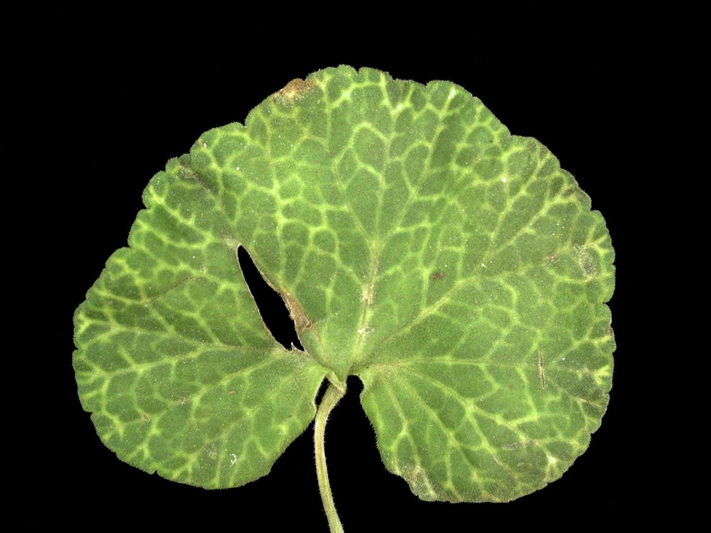 Légende: Jaunissement des nervures sur feuille de géranium