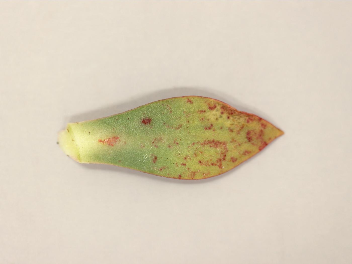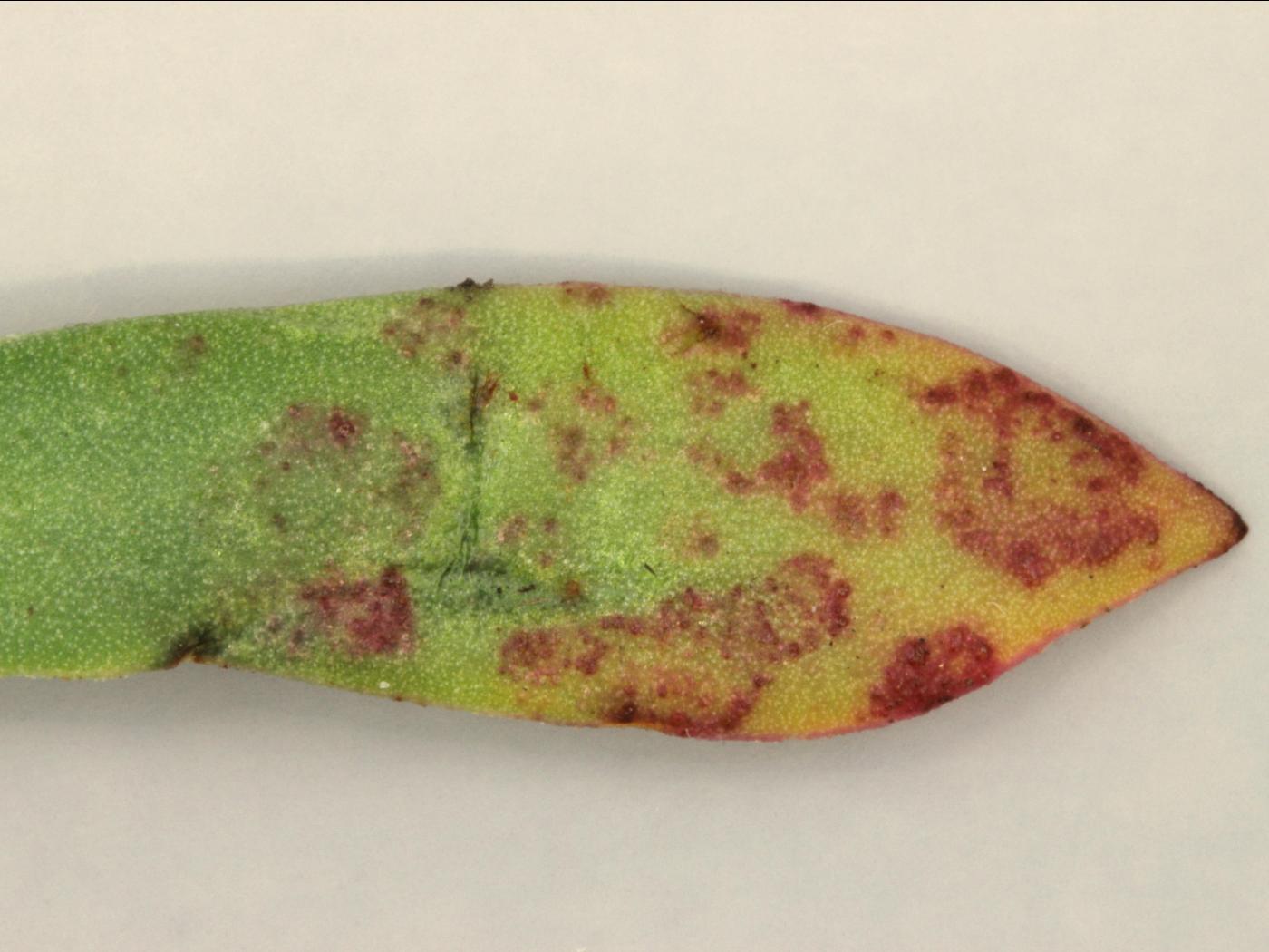 Feuille : présence de marbrures, de mosaïques, de taches en anneaux, d’anomalies de coloration, de déformations ou de brûlures de l’apex.