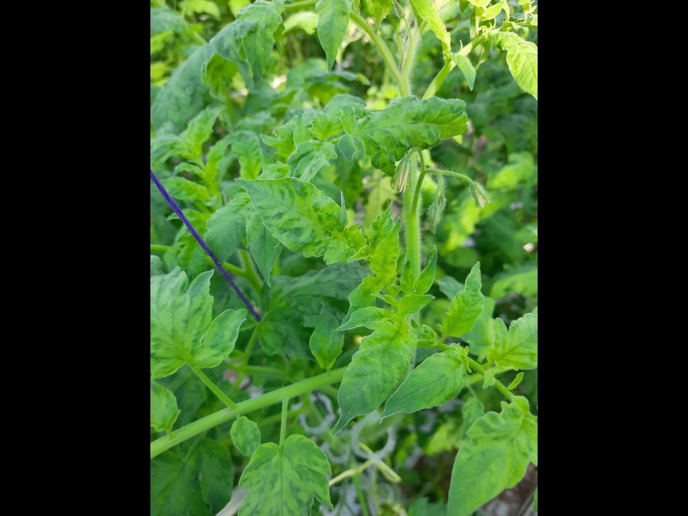 Description: Le virus du fruit brun rugueux de la tomate (Tomato brown rugose fruit virus, ToBRFV) a été détecté dans ce plant de tomate cultivé en serre.