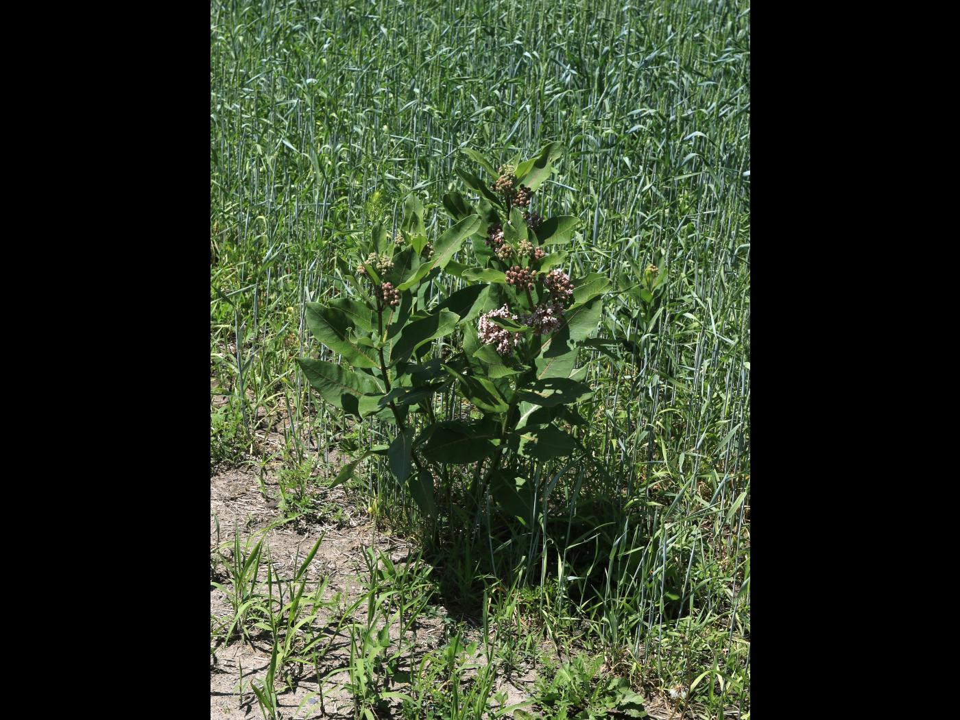 - Ajouter à la rotation des plantes qui couvrent rapidement le sol. Par exemple, la luzerne (Medicago sativa) et le blé d’automne (Triticum aestivum) concurrencent bien contre l’asclépiade. Combiner la culture du blé d’automne au labour pour 5 années consécutives éliminera l’asclépiade de Syrie.