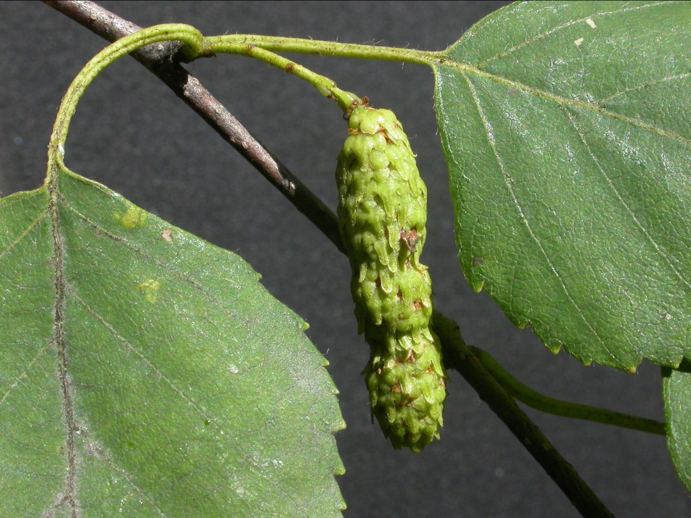 Les fleurs mâles et femelles sont portées sur des chatons différents. Les chatons femelles sont verdâtres et portés par de longs pédoncules sur de courts rameaux feuillés. Ils sont habituellement solitaires et mesurent de 3 à 5 cm de longueur. De plus, ils sont ascendants et pubescents. Les chatons mâles sont regroupés par 2 ou 3 à l’extrémité des rameaux de l’année précédente et sont jaunâtres. Ils sont pendants et mesurent de 3 à 10 cm de longueur.
