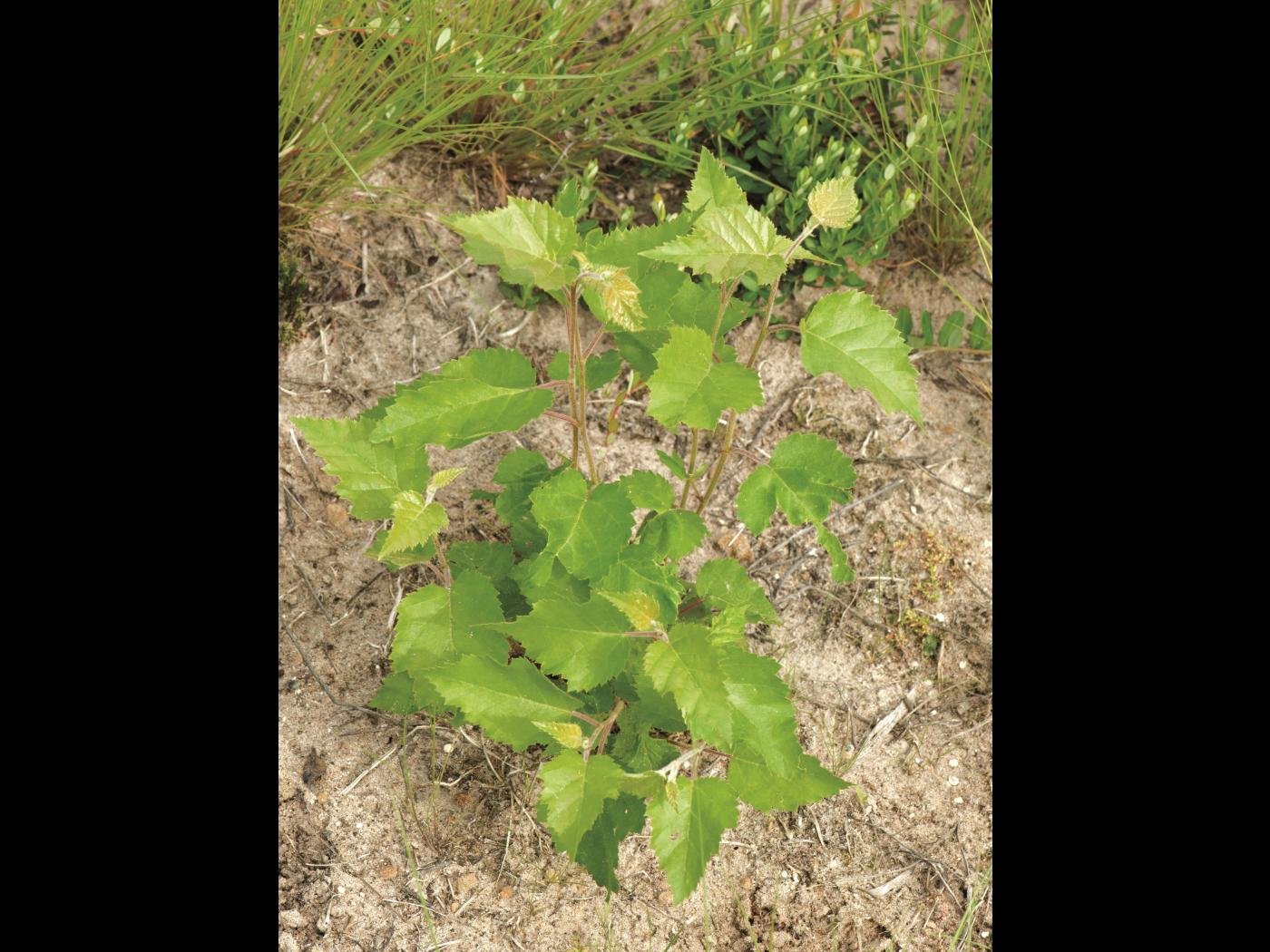 Chez les jeunes plants et les pousses végétatives, les feuilles sont souvent pubescentes et glanduleuses et leur base est en forme de cœur.