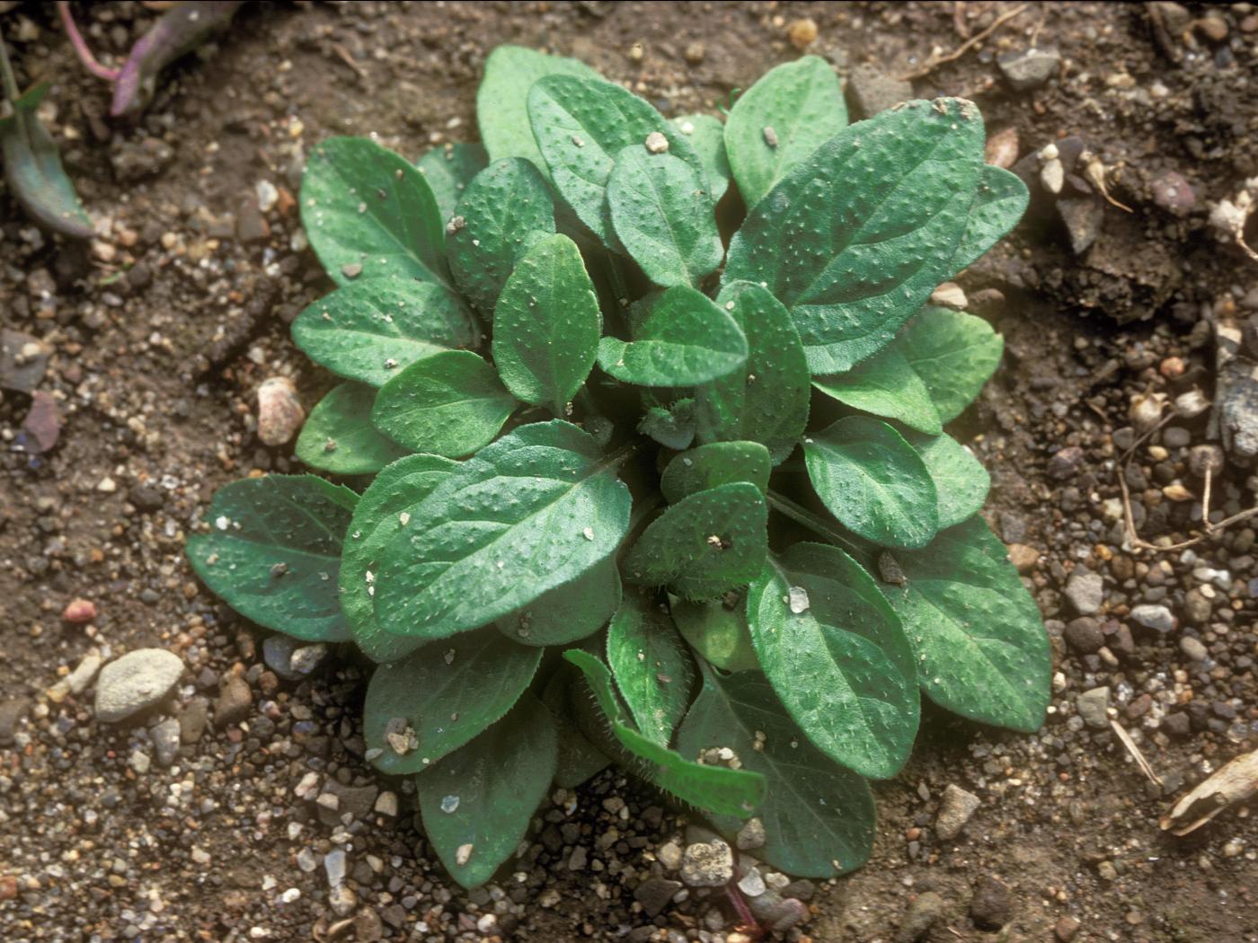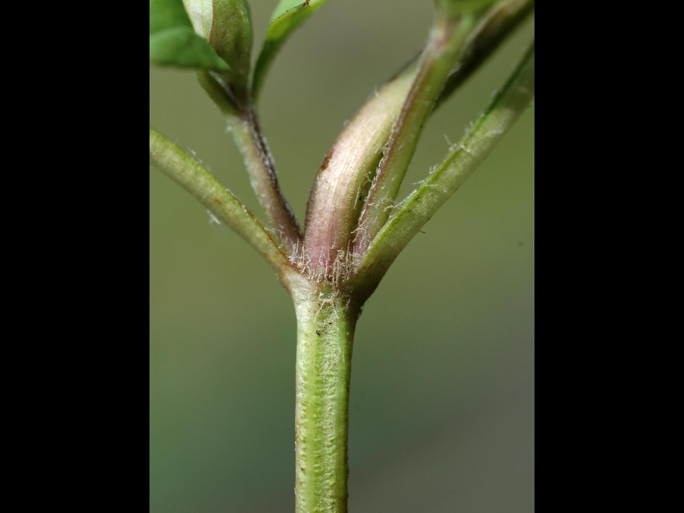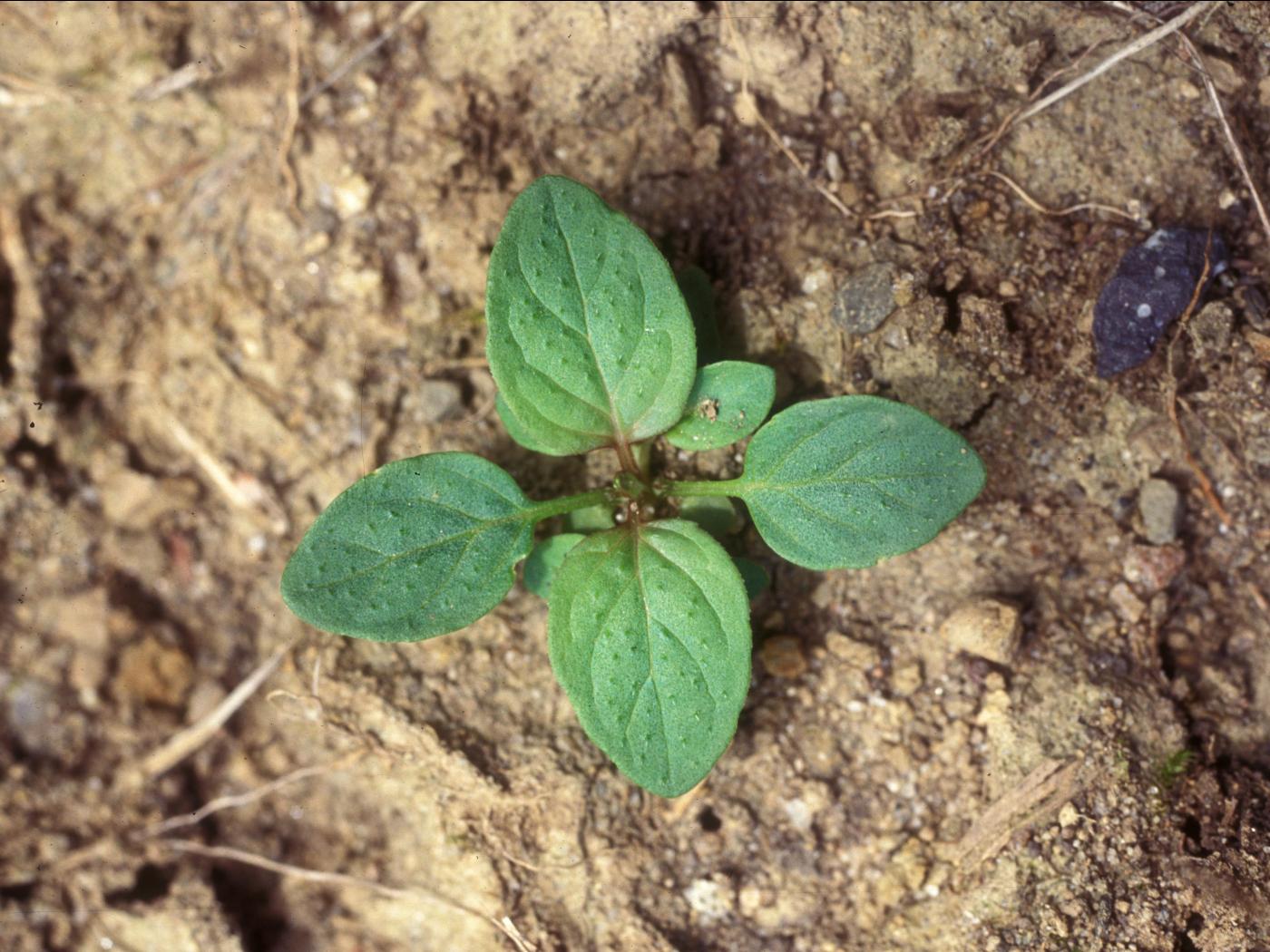 La plantule est composée de feuilles opposées sur une courte tige. Les cotylédons sont oblongs avec une encoche au bout du limbe et des marges lobées pointant vers la tige. Les premières feuilles sont ovées, pointues au sommet avec des marges entières ou grossièrement dentées.