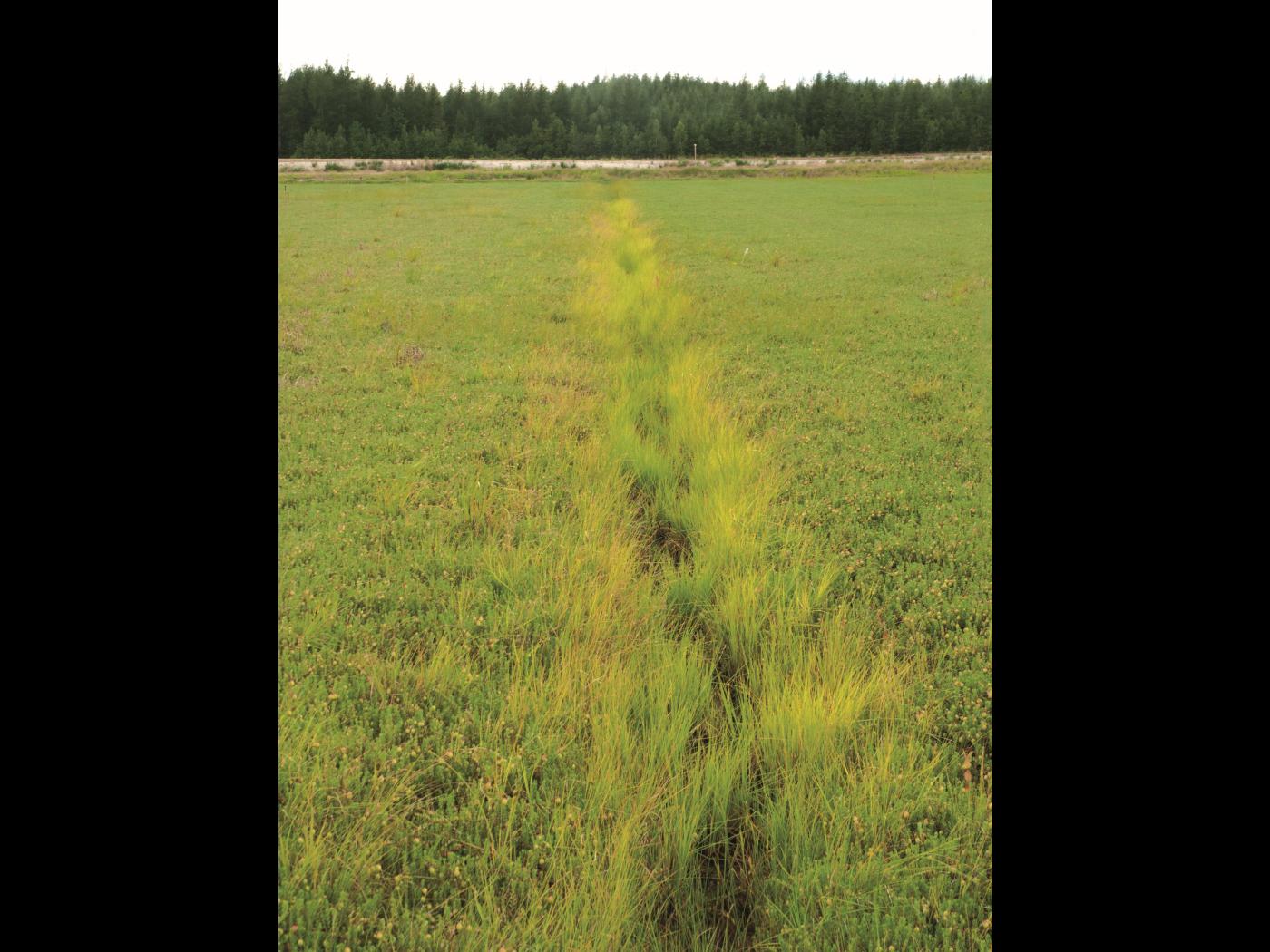 Légende: Infestation dans un fossé, en bordure d'un champ de canneberges