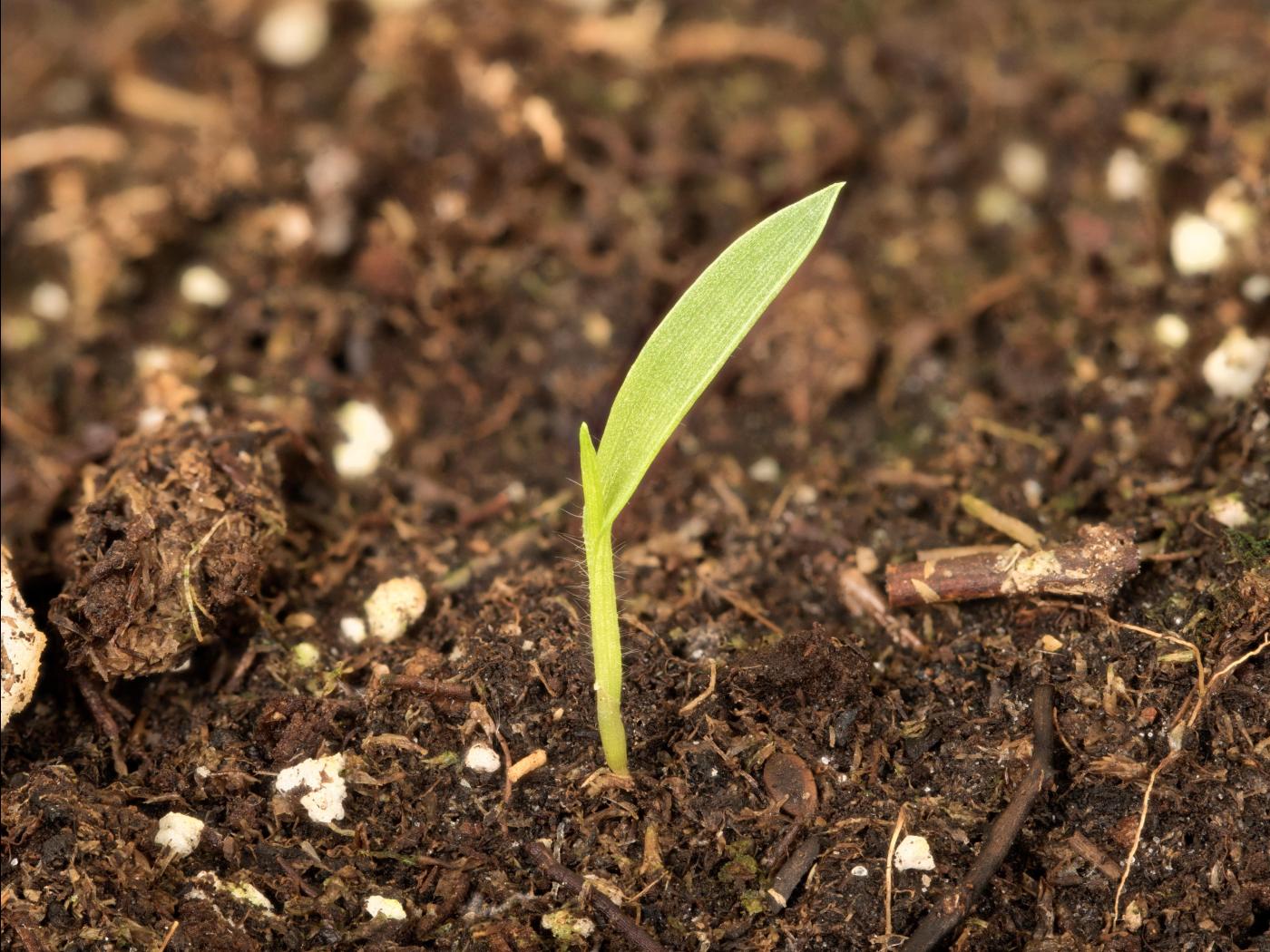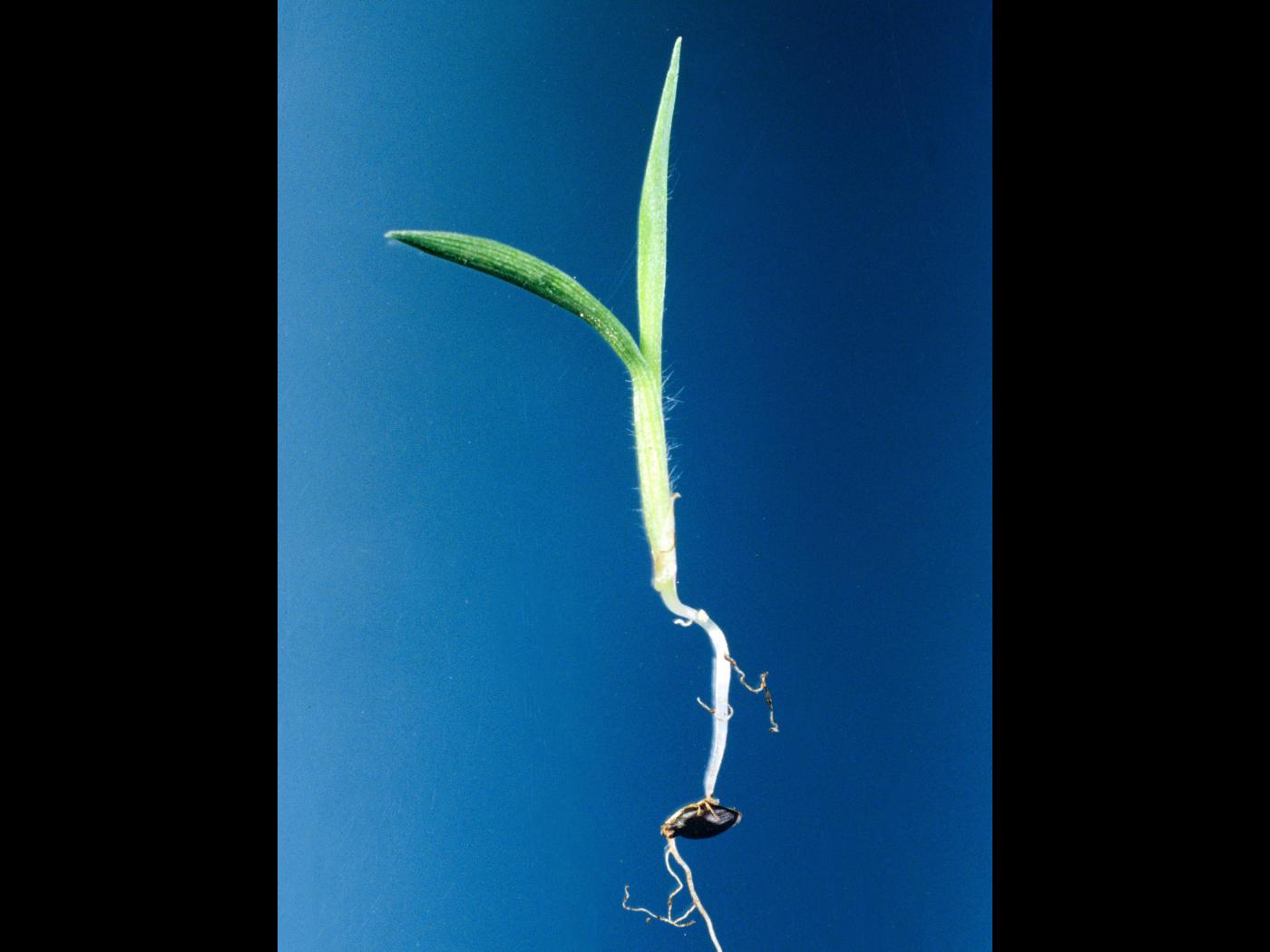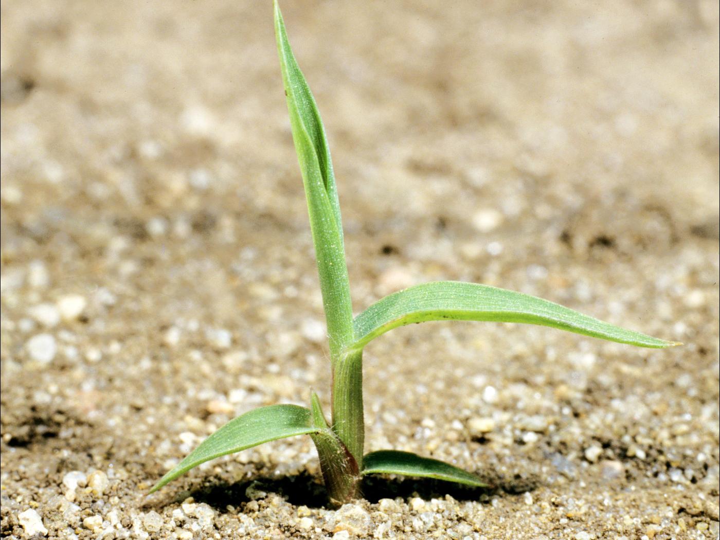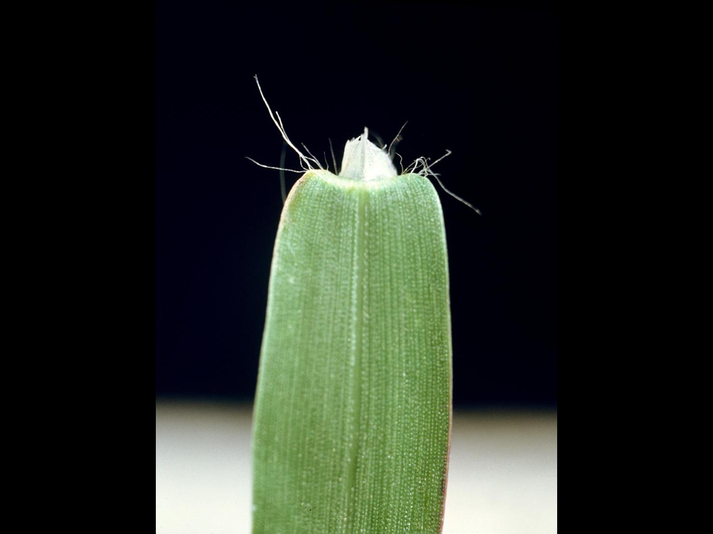 La plantule est pubescente avec des poils lâches jusqu’au stade de 3 à 4 feuilles. Les premières feuilles sont rabattues vers le sol. La ligule, présente à partir de la 3e feuille, est membraneuse et mesure de 2 à 3 mm de longueur. La gaine est à section arrondie à ovale et les nouvelles feuilles apparaissent enroulées sur elles-mêmes.