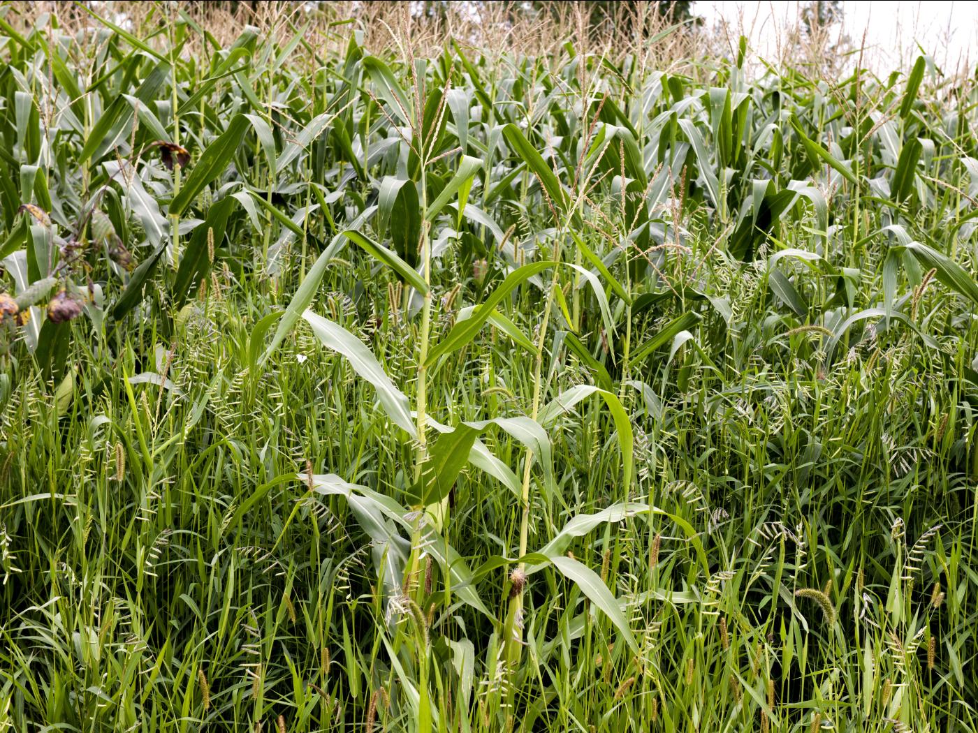 - Faire un désherbage mécanique entre les rangs pour les cultures de maïs et de soya (cultures en rangs). Celui-ci est efficace contre les jeunes plants d’ériochloé velue, mais plusieurs passages peuvent être nécessaires. Cette méthode devient inefficace sur les plants bien développés puisque les tiges ont la capacité de s’enraciner aux nœuds.