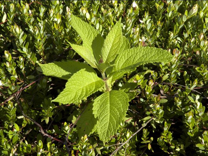 Les feuilles sont disposées en verticilles bien espacés sur la tige. De 4 à 7 feuilles sont présentes par verticille. Le limbe est de forme lancéolée elliptique à lancéolée ovée, il se termine en pointe et a une marge dentée. Il mesure de 8 à 25 cm de longueur et de 2,5 à 9 cm de largeur. Les feuilles sont recouvertes de poils à la face supérieure et elles sont habituellement glabres à la face inférieure. Elles sont portées par un pétiole glabre qui mesure de 0,1 à 2,5 cm de longueur.
