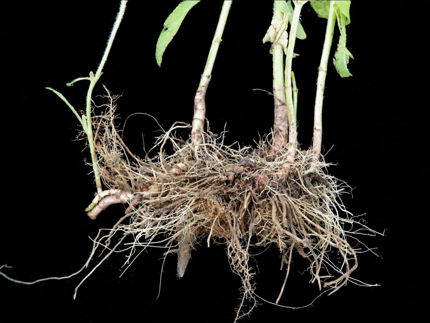 Légende: Base d'un plant, racines