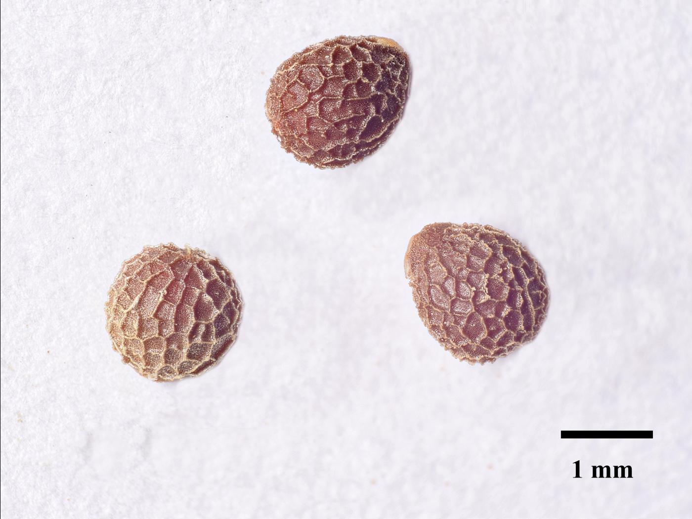 Les fruits sont des capsules glabres et lisses qui contiennent trois graines. Celles-ci sont ovoïdes et mesurent 2 mm de long et 1,5 mm de large. Elles sont brun foncé et réticulées.