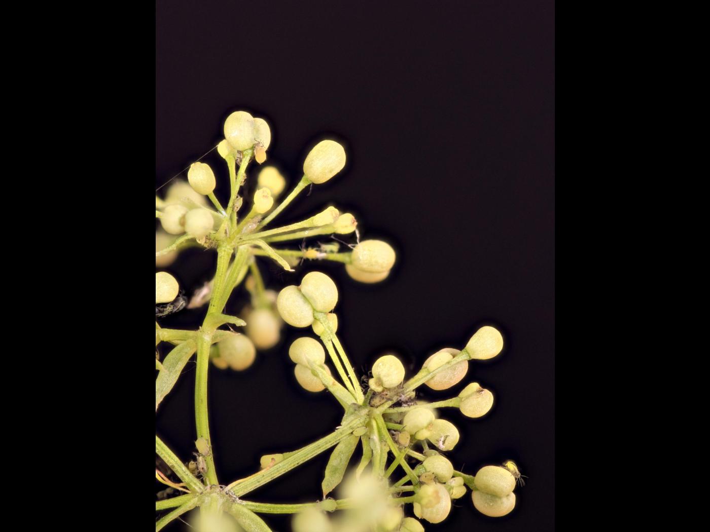 Le fruit est un schizocarpe glabre se divisant en 2 méricarpes contenant chacun une graine. Les semences ont une forme variant de réniforme à sphérique et ont une surface ridée de couleur brune à brun foncé. Leur diamètre est de 1 à 2 mm.