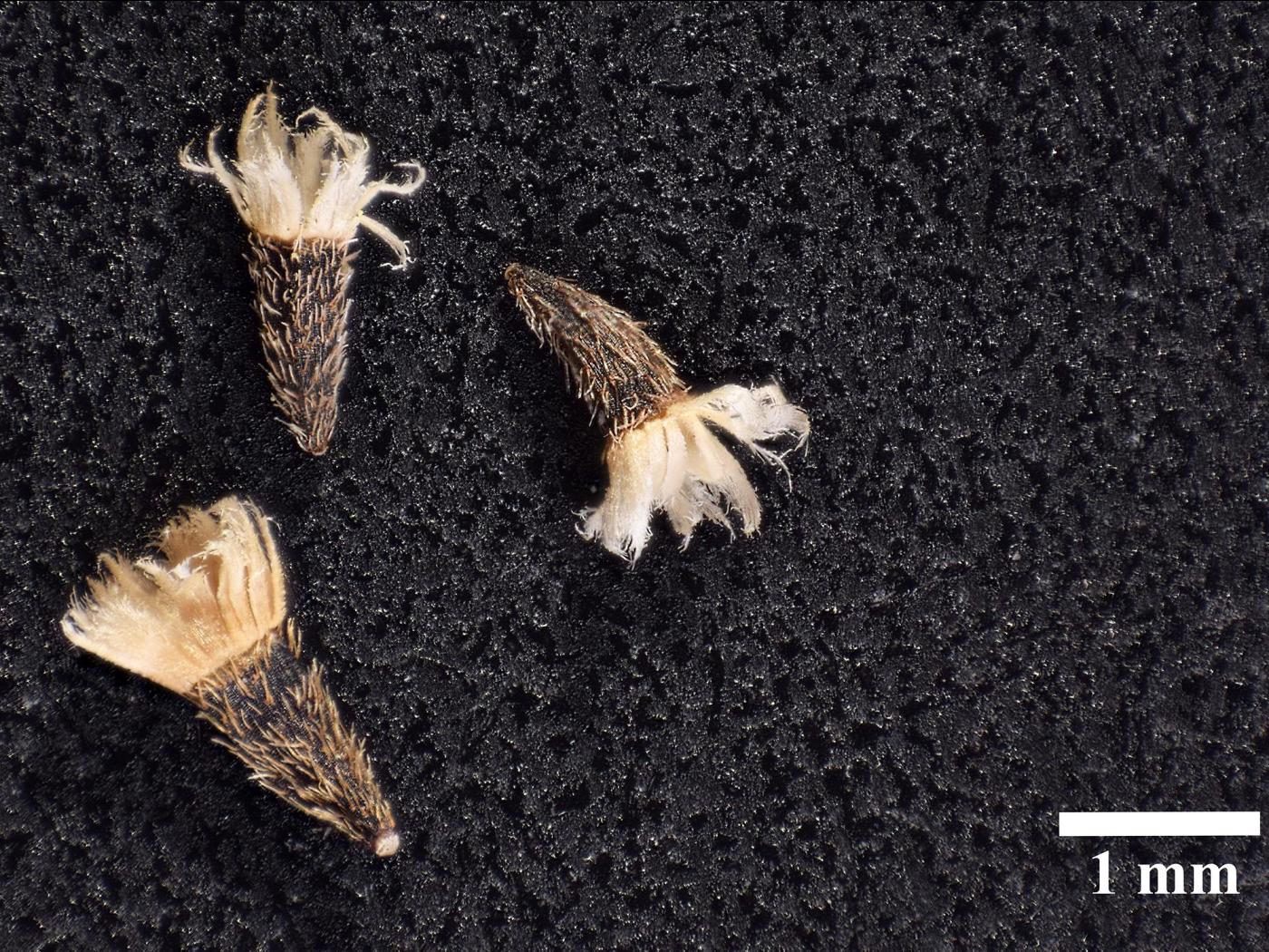Les fruits sont des akènes bruns foncés à noirs de forme pyramidale allongée. Ils mesurent de 1 à 1,6 mm de long par 0,5 à 0,8 mm de large. Une fleur produit en moyenne 30 akènes. Ceux-ci sont coiffés d’une petite couronne écailleuse.