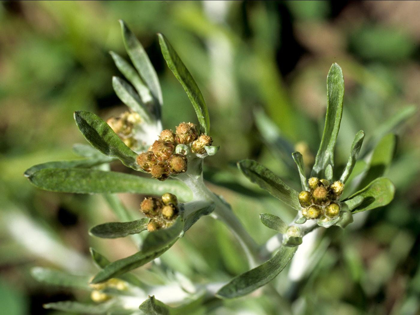 Les fleurs sont regroupées en glomérule compact au sommet de la tige et des rameaux, ainsi qu’à l’aisselle des feuilles. Elles se composent de fleurons tubulés réunis sur un capitule de 2 à 4 mm de diamètre. Les fleurons tubulés sont de couleur blanchâtre ou brunâtre.