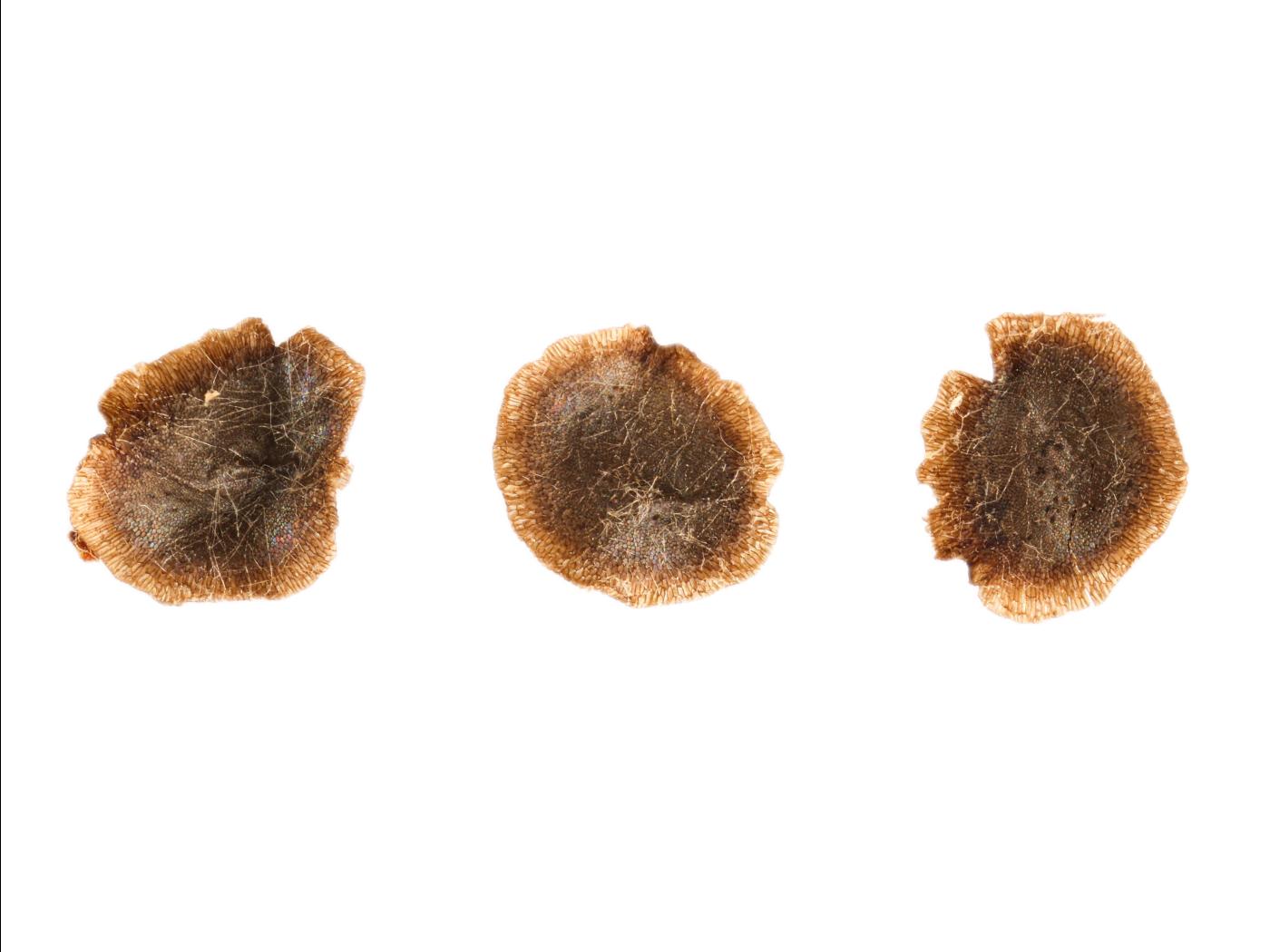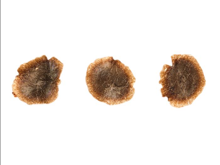 Les fruits sont des capsules arrondies à ovées mesurant de 8 à 12 mm de longueur. La graine est ronde, aplatie et ailée. Elle est de couleur brun foncé à noire et mesure de 1,4 à 2,1 mm de diamètre et 0,5 mm d’épaisseur.