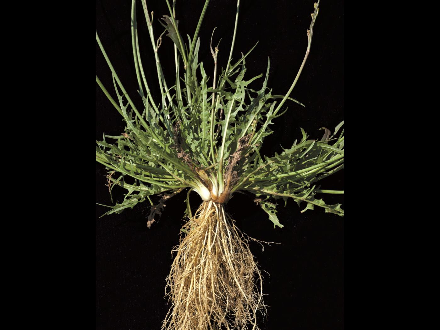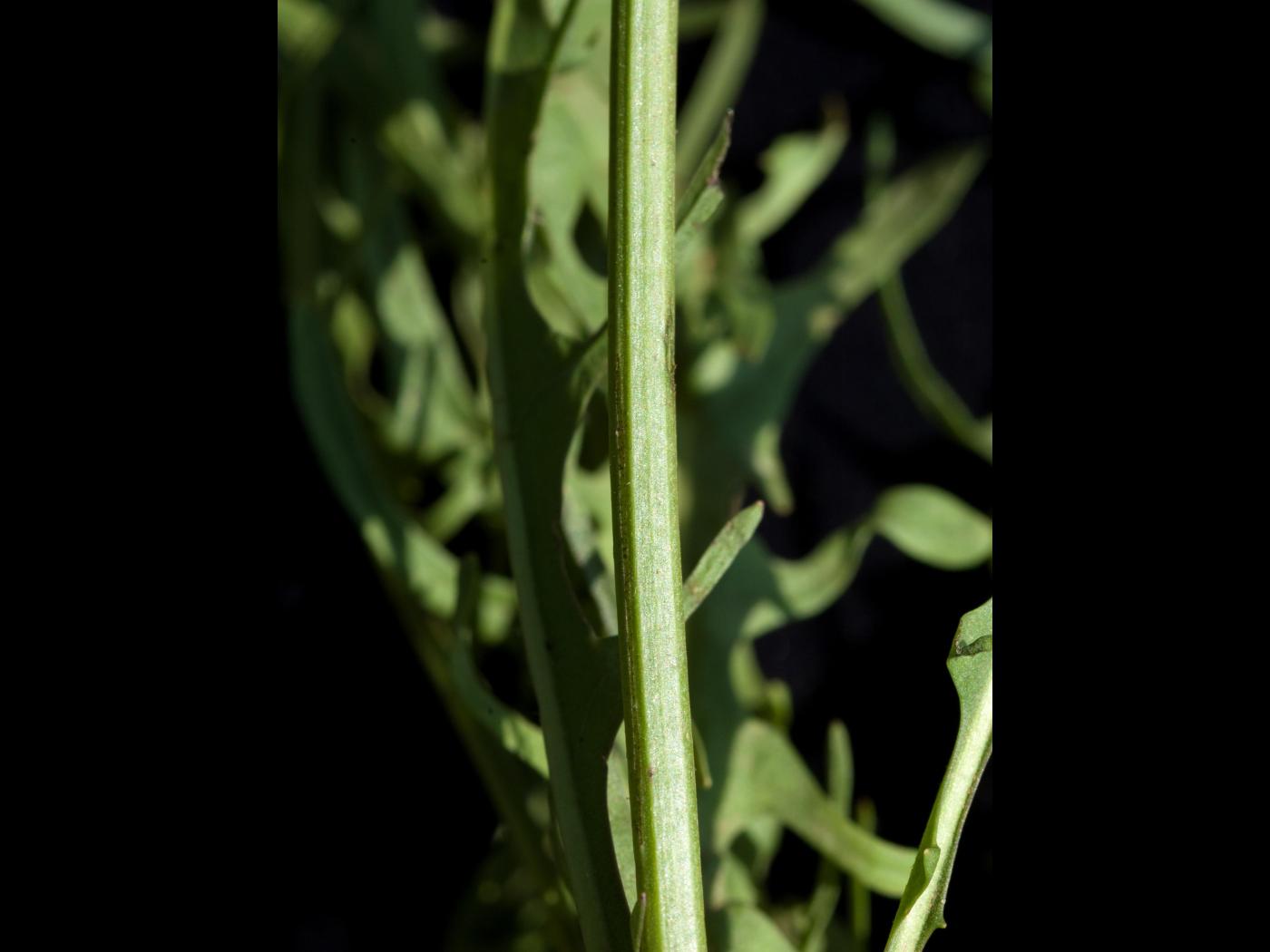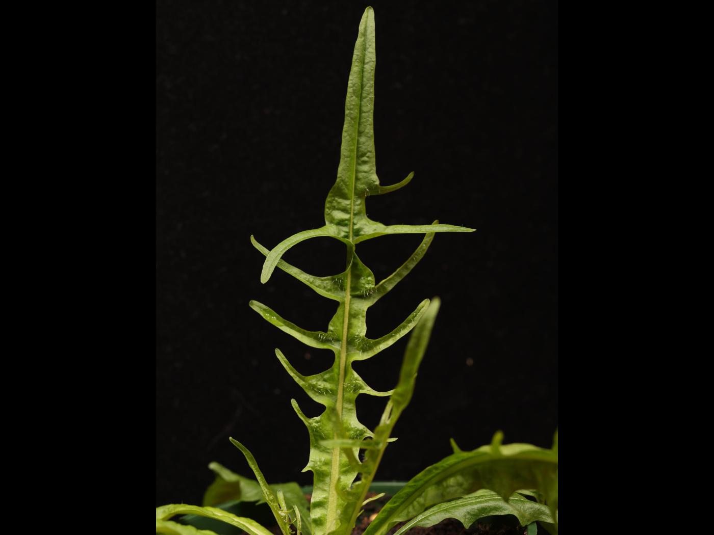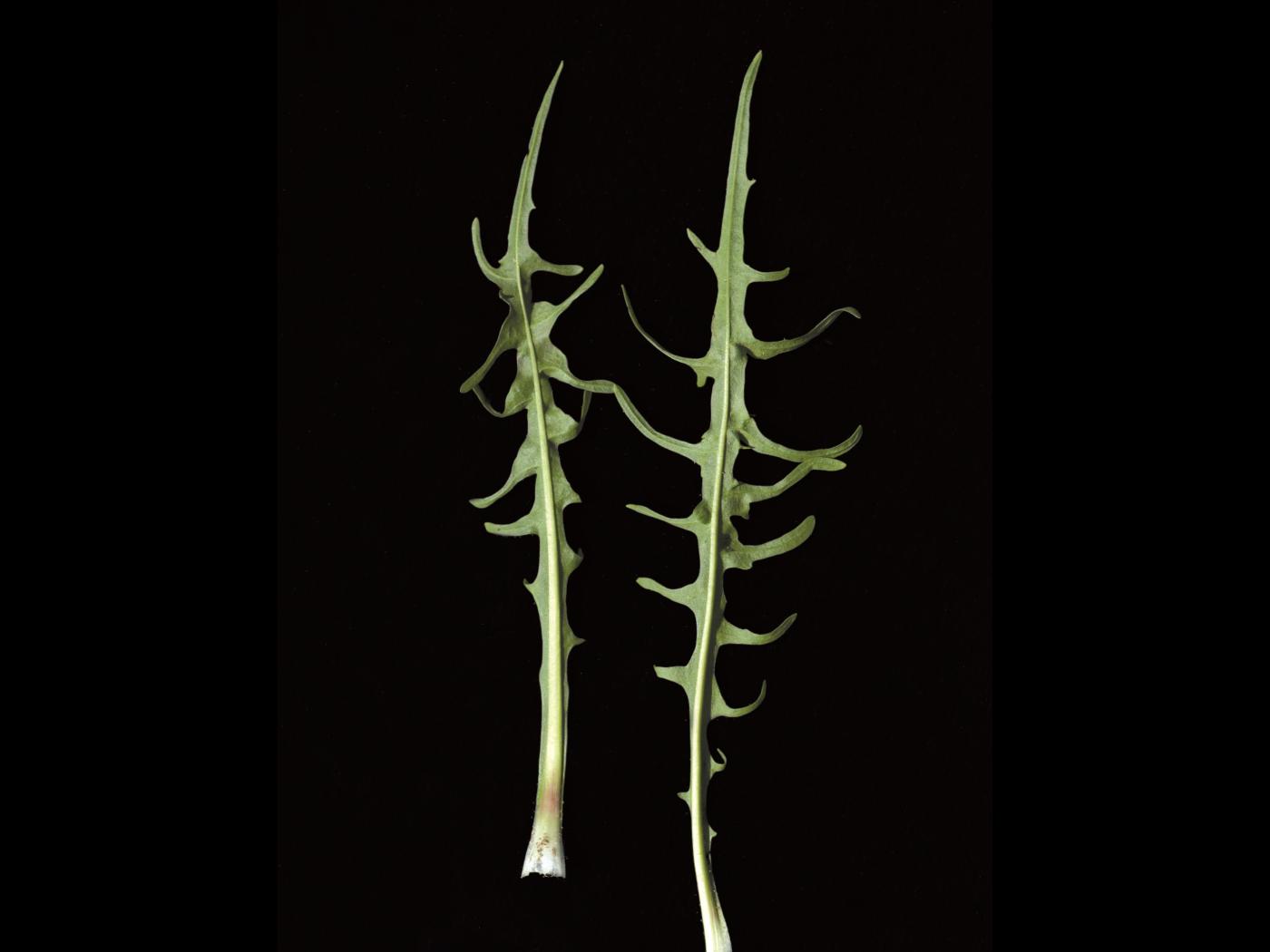 Les feuilles sont toutes situées à la base du plant. Le limbe est très allongé, de forme elliptique à oblancéolée et mesure de 4 à 35 cm de longueur et de 0,5 à 4 cm de largeur. La marge est profondément découpée à lobée avec des lobes étroits, droits ou un peu recourbés. Les faces du limbe sont glabres ou un peu pubescentes.