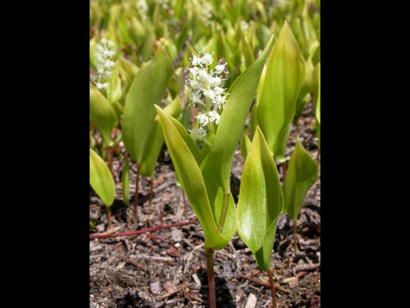 Le maïanthème du Canada est une espèce difficile à éliminer des champs de bleuet à cause de son système racinaire rhizomateux. Par contre, il tolère peu la compétition avec d’autres espèces, alors favoriser un établissement dense des plants de bleuet nuira à son établissement. Aussi, l’application de paillis sur le sol dénudé peut nuire à sa croissance.