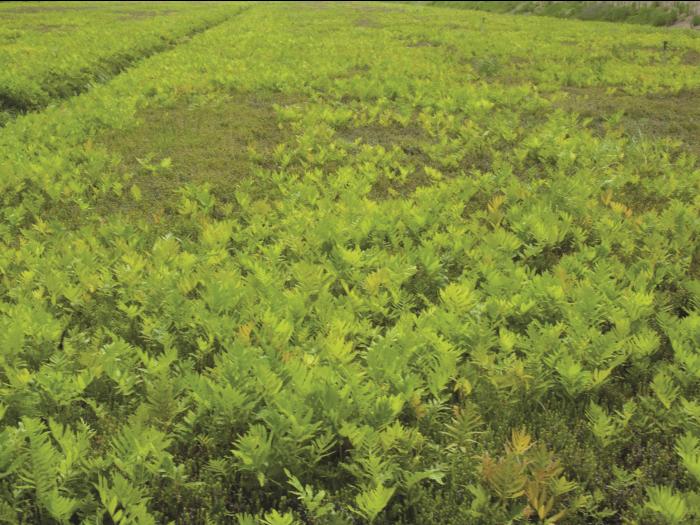 - Creuser et enlever les rhizomes et les racines des plants. L’arrachage des rhizomes est difficile lorsque les plants sont présents dans les champs de canneberges, le désherbage manuel n’exerce alors qu’un contrôle temporaire.