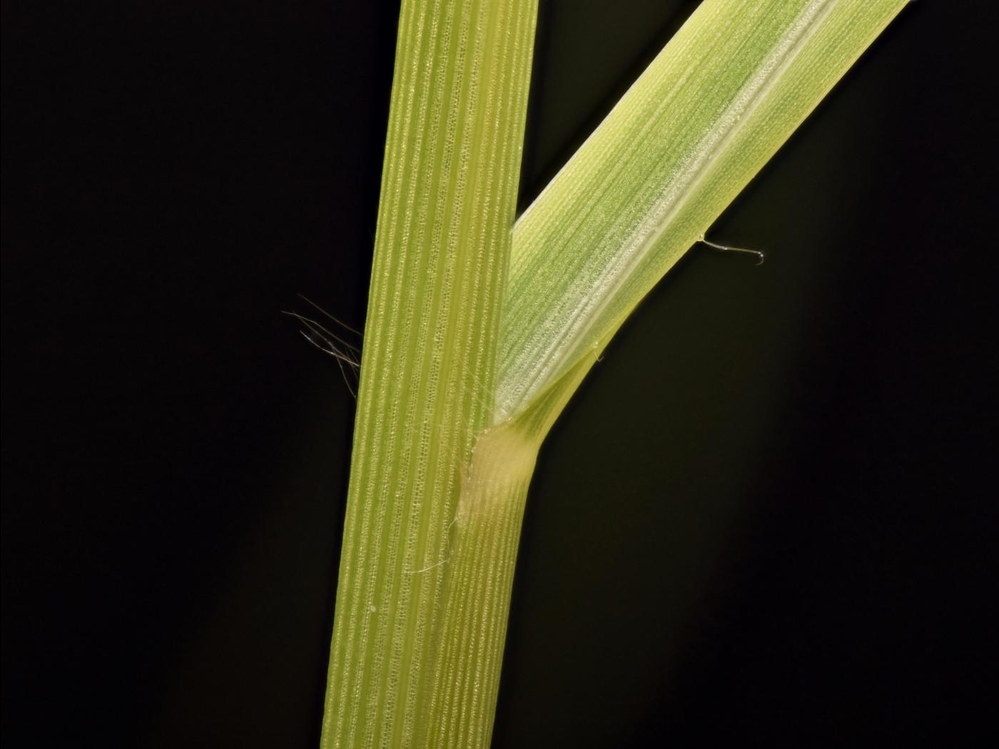 Les feuilles sont de couleur verte, le limbe mesure de 10 à 65 cm de long et de 0,3 à 2,5 mm de largeur. Il est linéaire et scabre le long des marges. La nervure centrale est blanchâtre et robuste. Les premières feuilles sont pubescentes puis, à partir de la 4e ou 5e feuille, elles sont glabres. La ligule est ciliée, d’apparence membraneuse à sa base et mesure de 0,5 à 2 mm de long. La gaine est glabre et il y a présence de cils au collet. Il n’y a pas d’oreillettes.